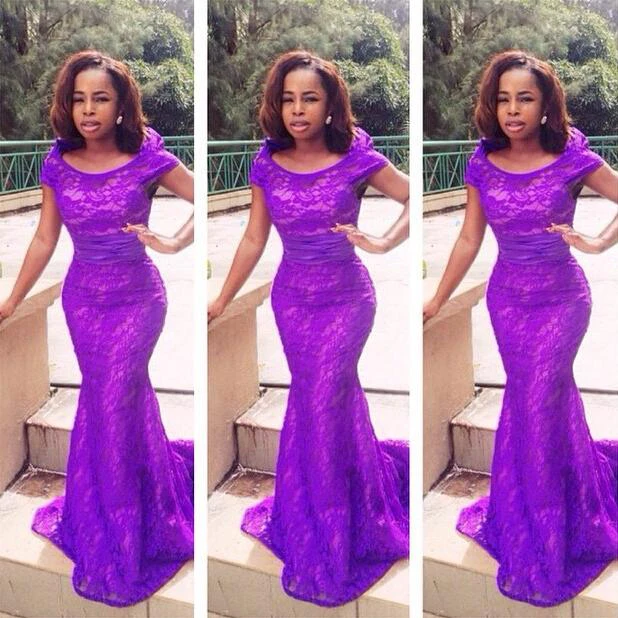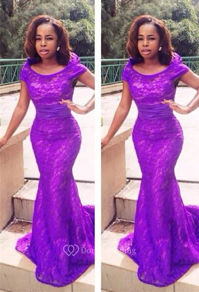 Sexy Mwemaid Lace Cap Sleeve Prom Dress Sweep Train