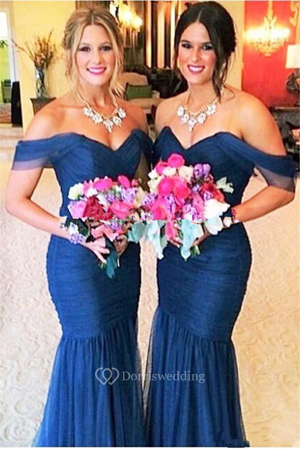 Sexy Off-shoulder Mermaid Bridesmaid Dress Floor-length With Tulle