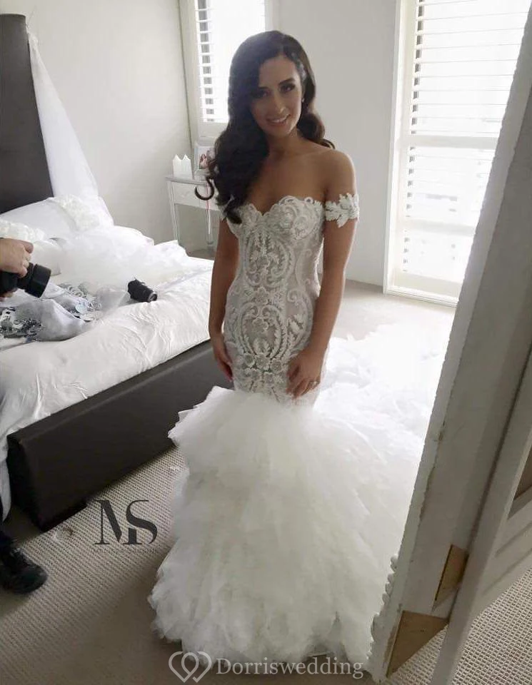 Sexy Off-the-shoulder Mermaid Wedding Dress Long Train With Ruffles