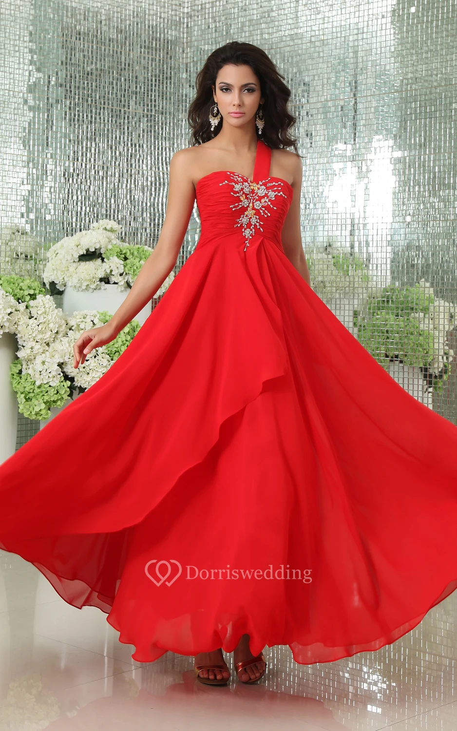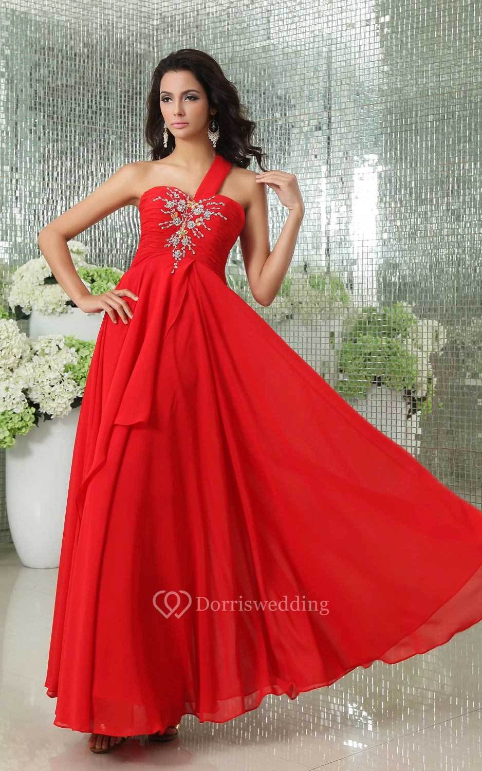 Sexy One-Shoulder Sweetheart Layered Chiffon Gown With Lace Up