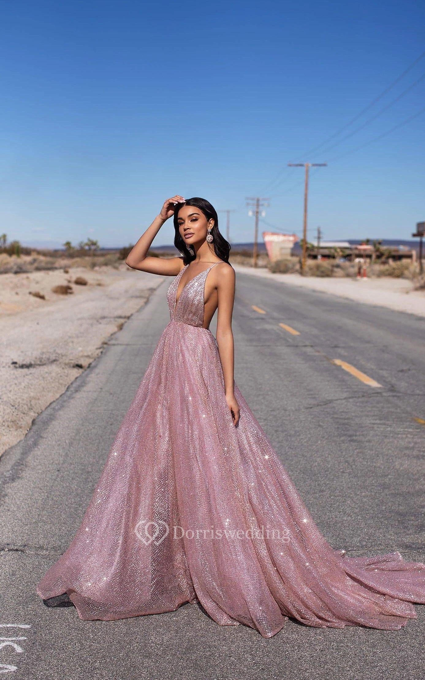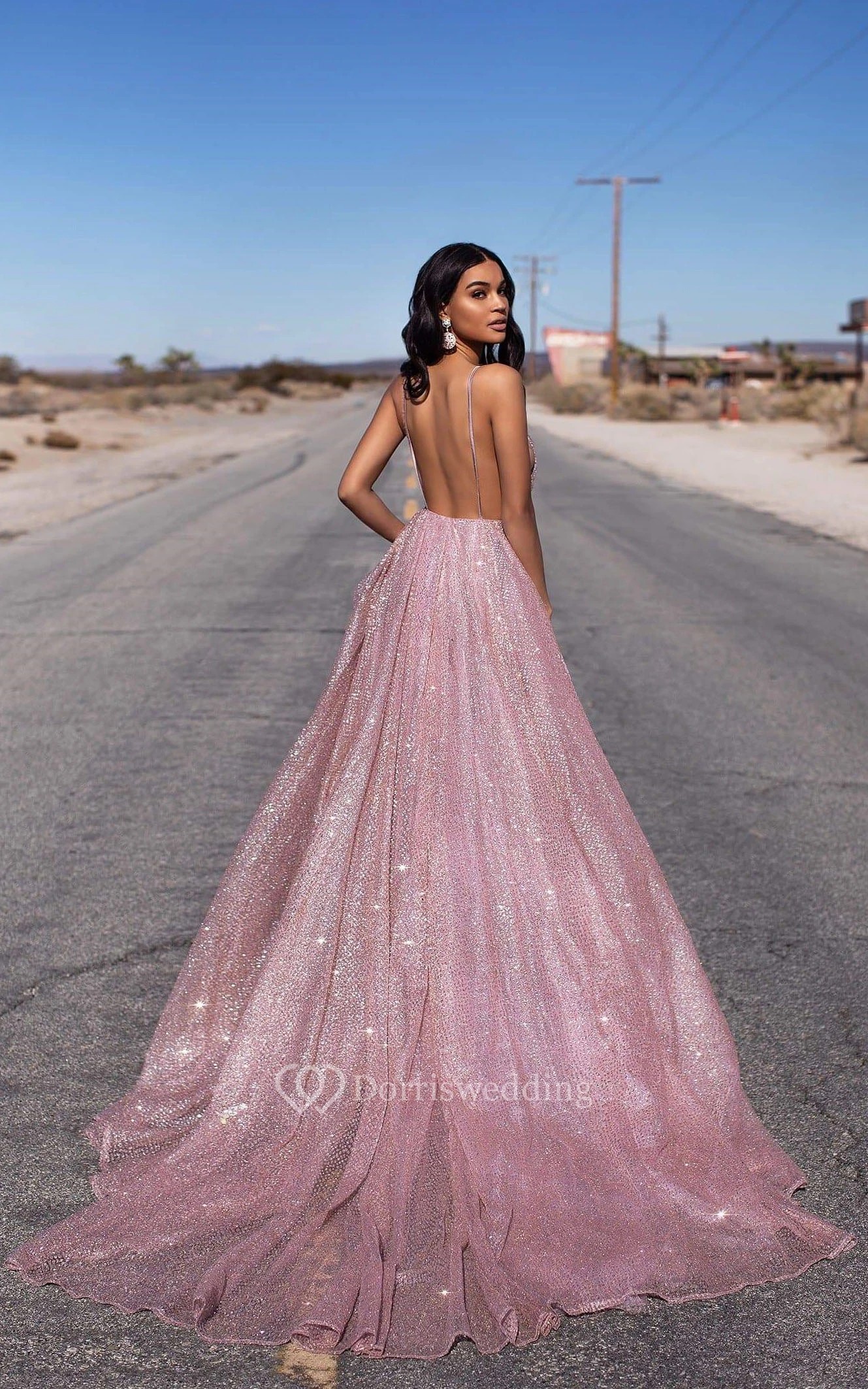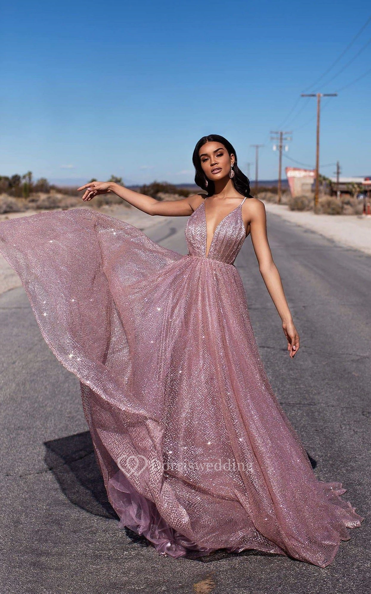 Sexy Plunged Spaghetti Empire A-line Sequin Prom Dress