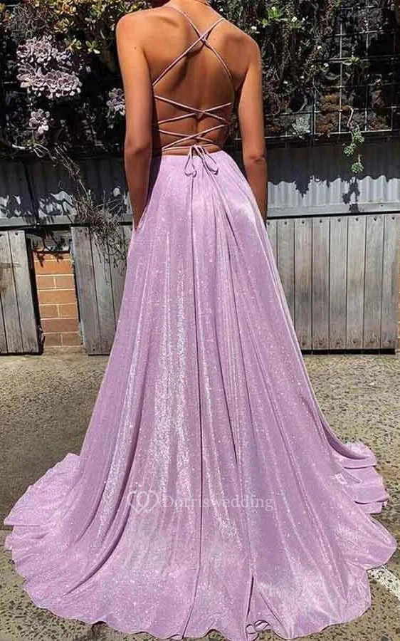 Sexy Plunged Spaghetti Empire A-line Sweep Train Evening Prom Dress