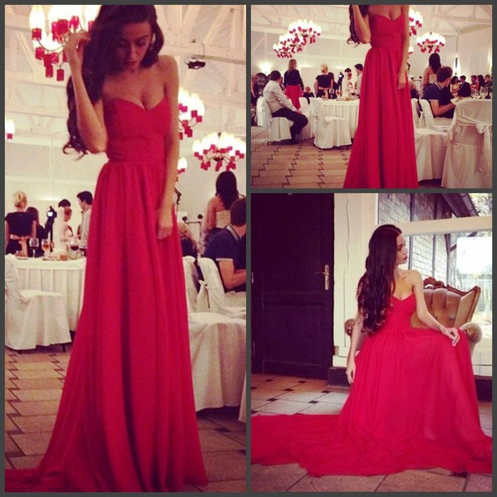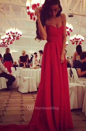 Sexy Red Sweetheart Long Chiffon Prom Dress on Sale