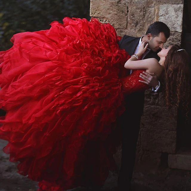 Sexy Red Sweetheart Organza Prom Dresses Appliques Ball Gown