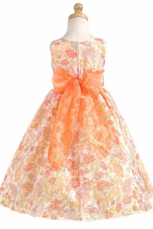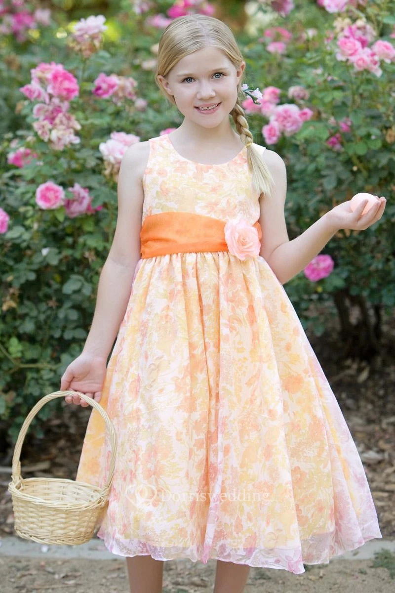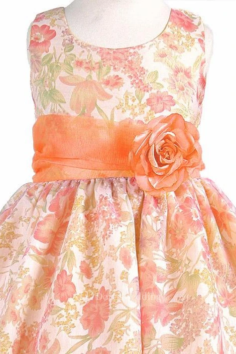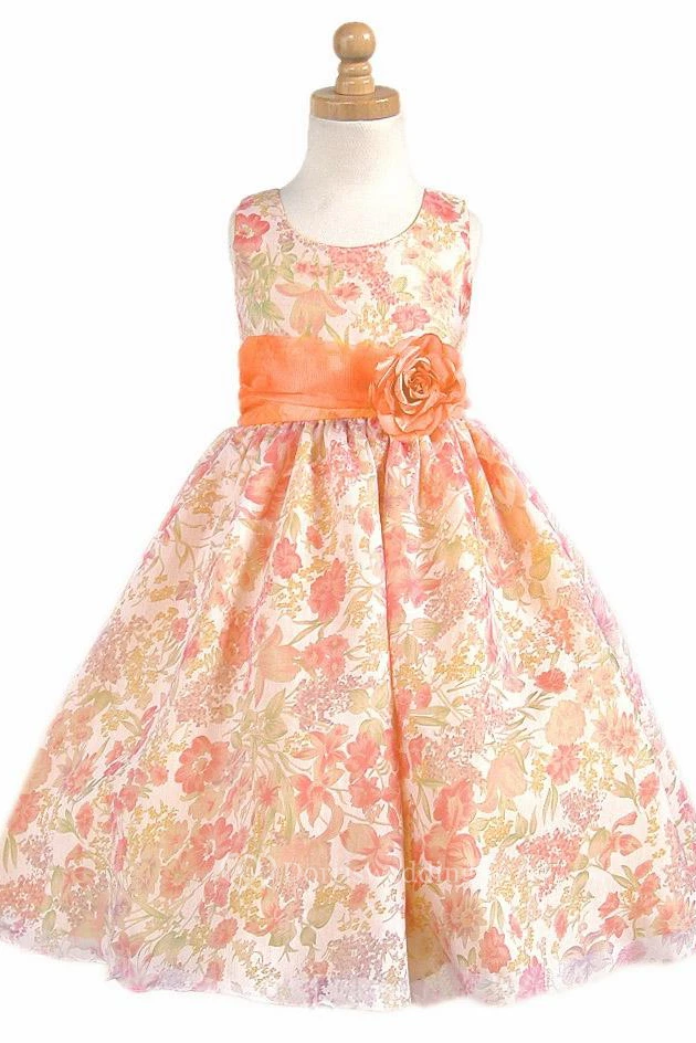 Tea-Length Floral Floral Organza Flower Girl Dress