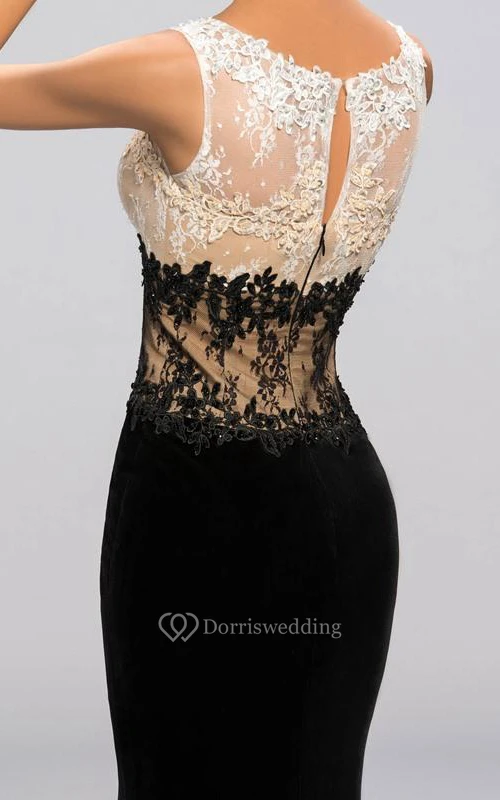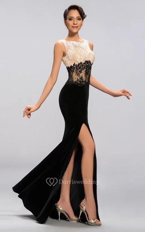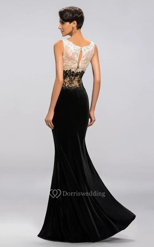 Sexy Scoop Neck Trumpet Appliques Zipper Up Prom Dress