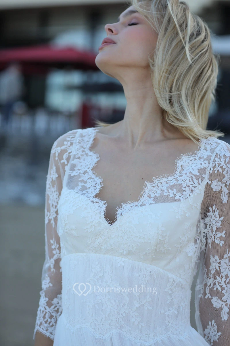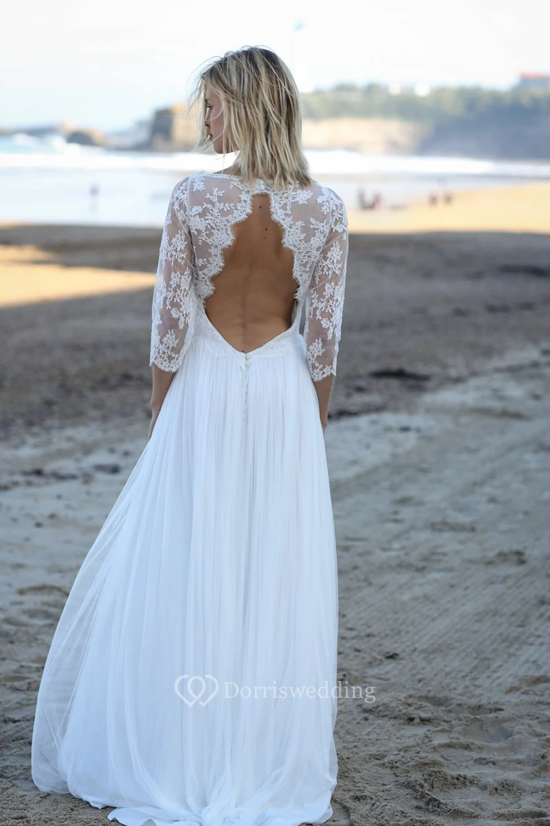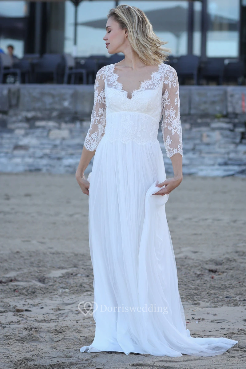 Sexy Sheath Chiffon Appliqued Long Wedding Dress with Keyhole Back
