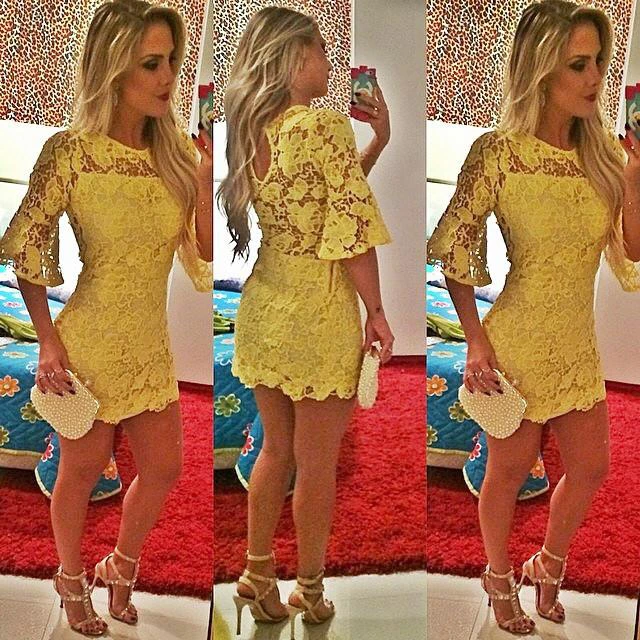 Sexy Short Yellow Cocktail Dress Lace Half Sleeve
