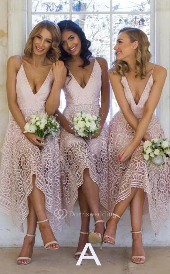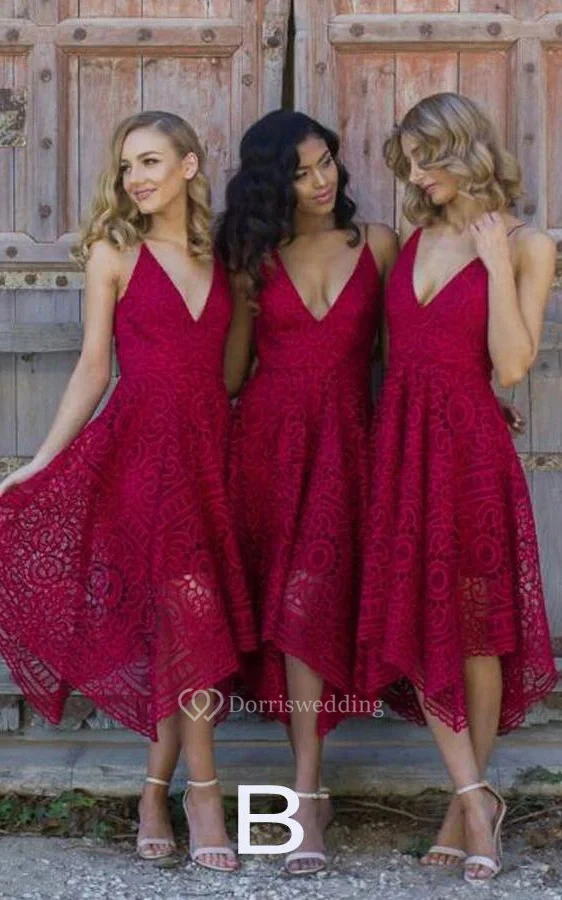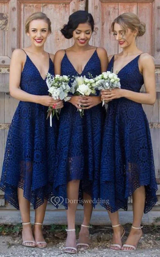 Sexy Spaghetti Plunged A-line Lace Tea-length Dress
