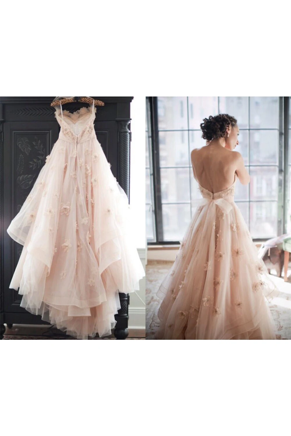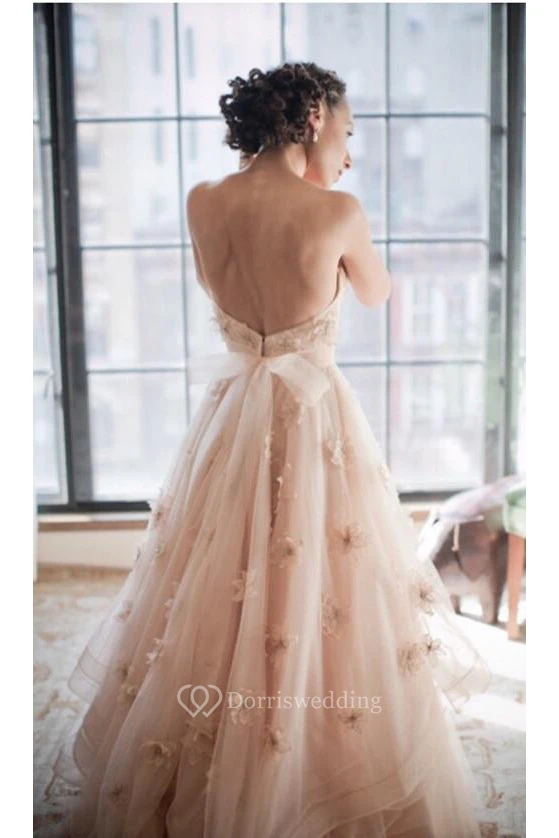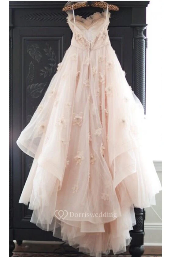 Sexy Spaghetti Sleeveless Tulle Wedding Dress With Flowers