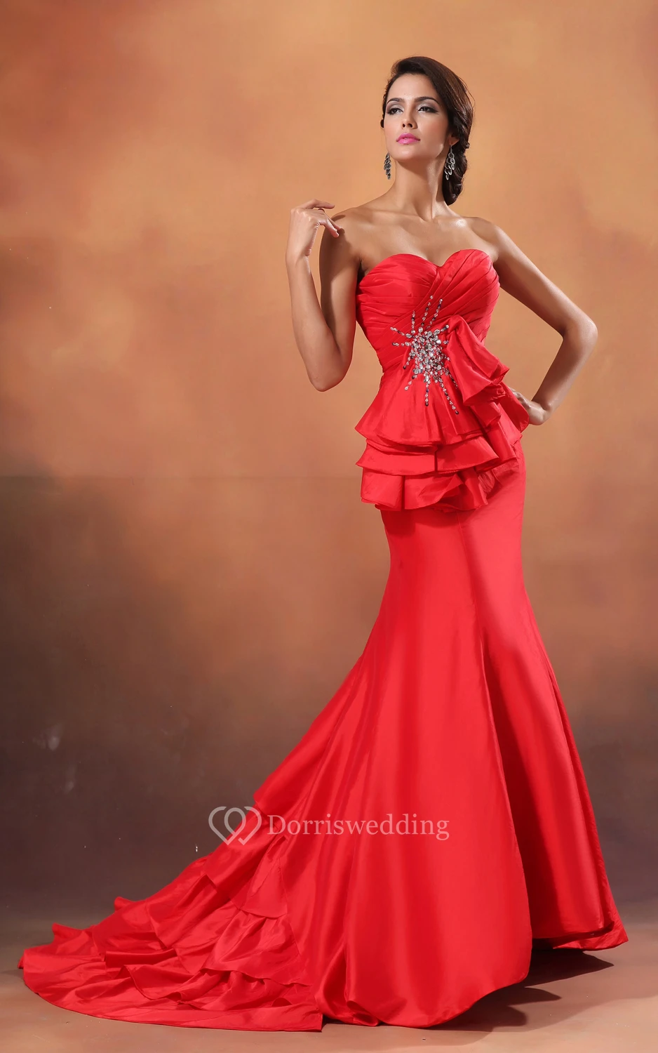 Sexy Sweetheart Taffeta Mermaid Gown With Sequins and Back Keyholes