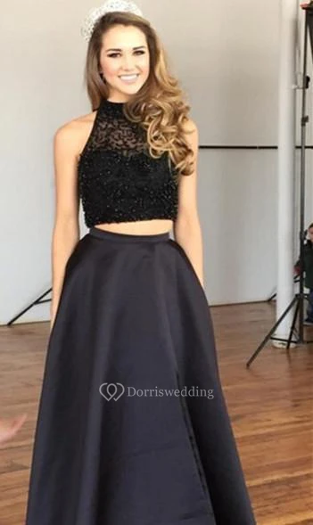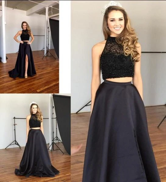 Sexy Two Piece Beadings Evening Dress Front Split Sweep Train