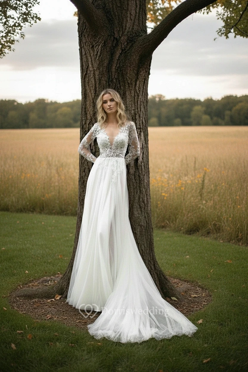 As a bride planning a countryside wedding, I wanted a dress that felt both authentic to the setting and special. This dress was the perfect answer. The quality is immediately noticeable—the lace is intricate and soft, not scratchy at all. The fit is phenomenal; it hugs your curves in a way that feels sophisticated, not restrictive. The dramatic V-back made me feel unexpectedly bold and beautiful, and it paired perfectly with a rustic, open-air venue. I received countless compliments, especially on the elegant contrast between the detailed front and the sexy back. It moved with me effortlessly throughout the day. If you're looking for a dress that seamlessly blends rustic romance with modern allure, this is absolutely it.