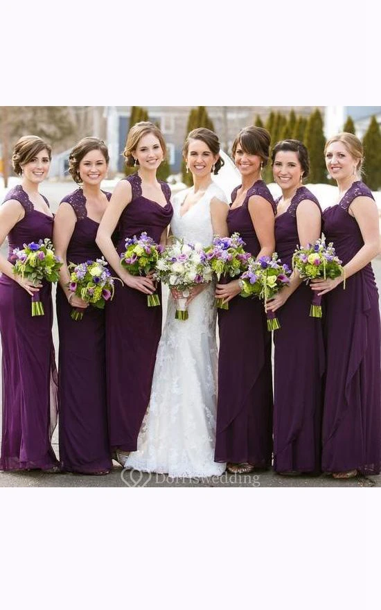 Sheath Ankle-Length Cap Sleeved Chiffon Lace Dress