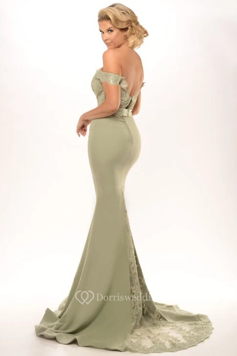 Sheath Appliqued Off-The-Shoulder Floor-Length Jersey Prom Dress