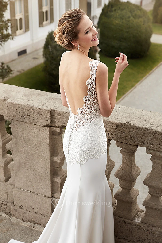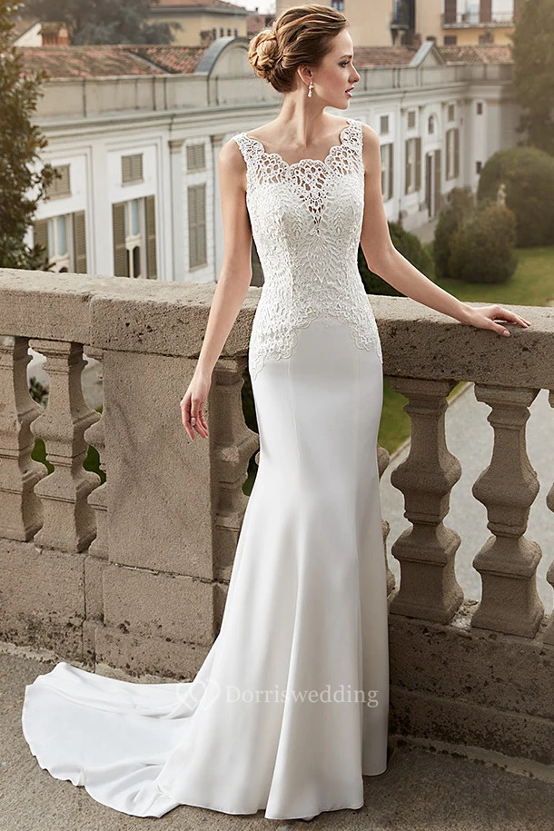 Sheath Appliqued Scoop-Neck Long Sleeveless Lace Wedding Dress