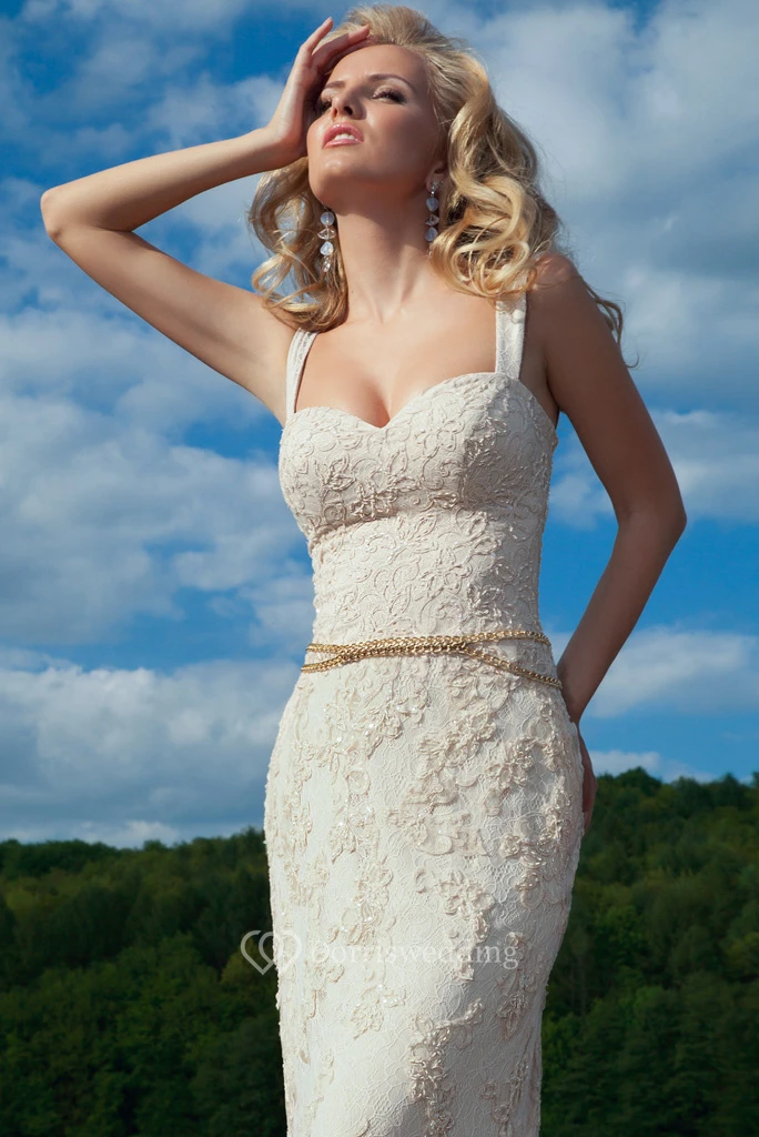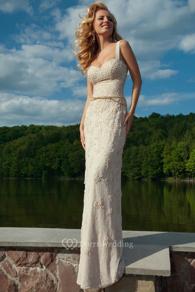 Sheath Appliqued Sleeveless Long Lace Prom Dress