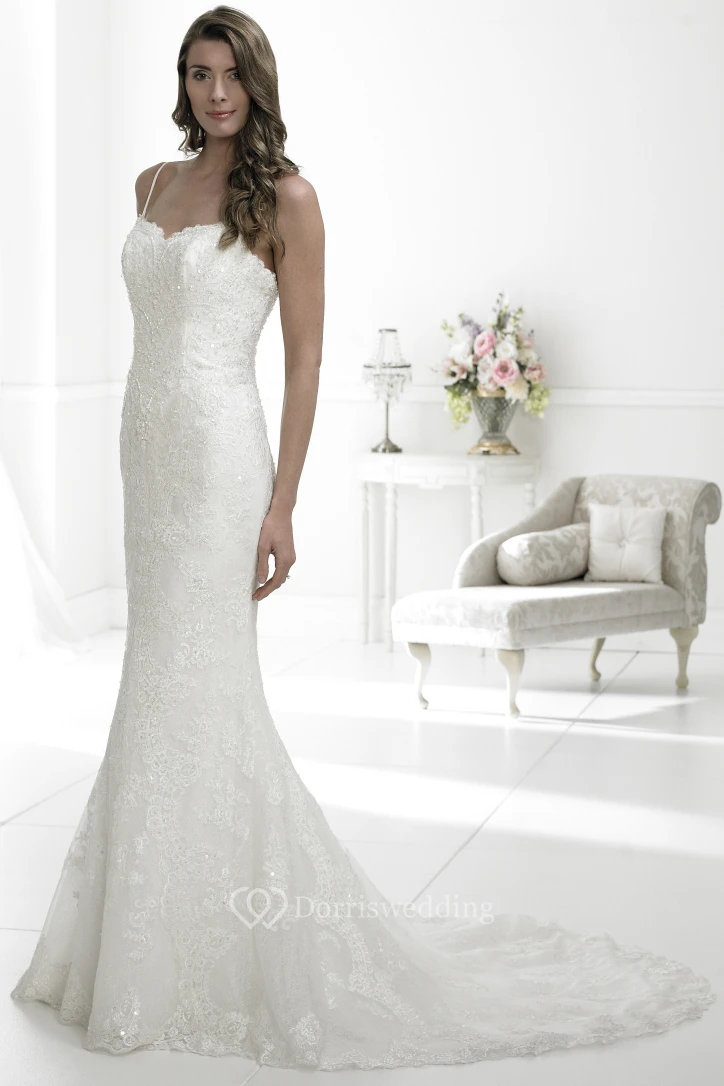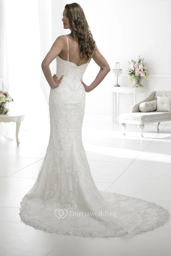 Sheath Appliqued Spaghetti Sleeveless Lace Wedding Dress