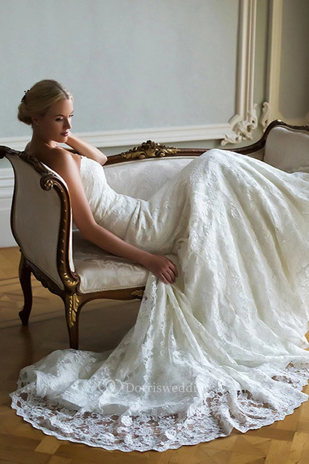 Sheath Appliqued Sweetheart Long Sleeveless Lace Wedding Dress
