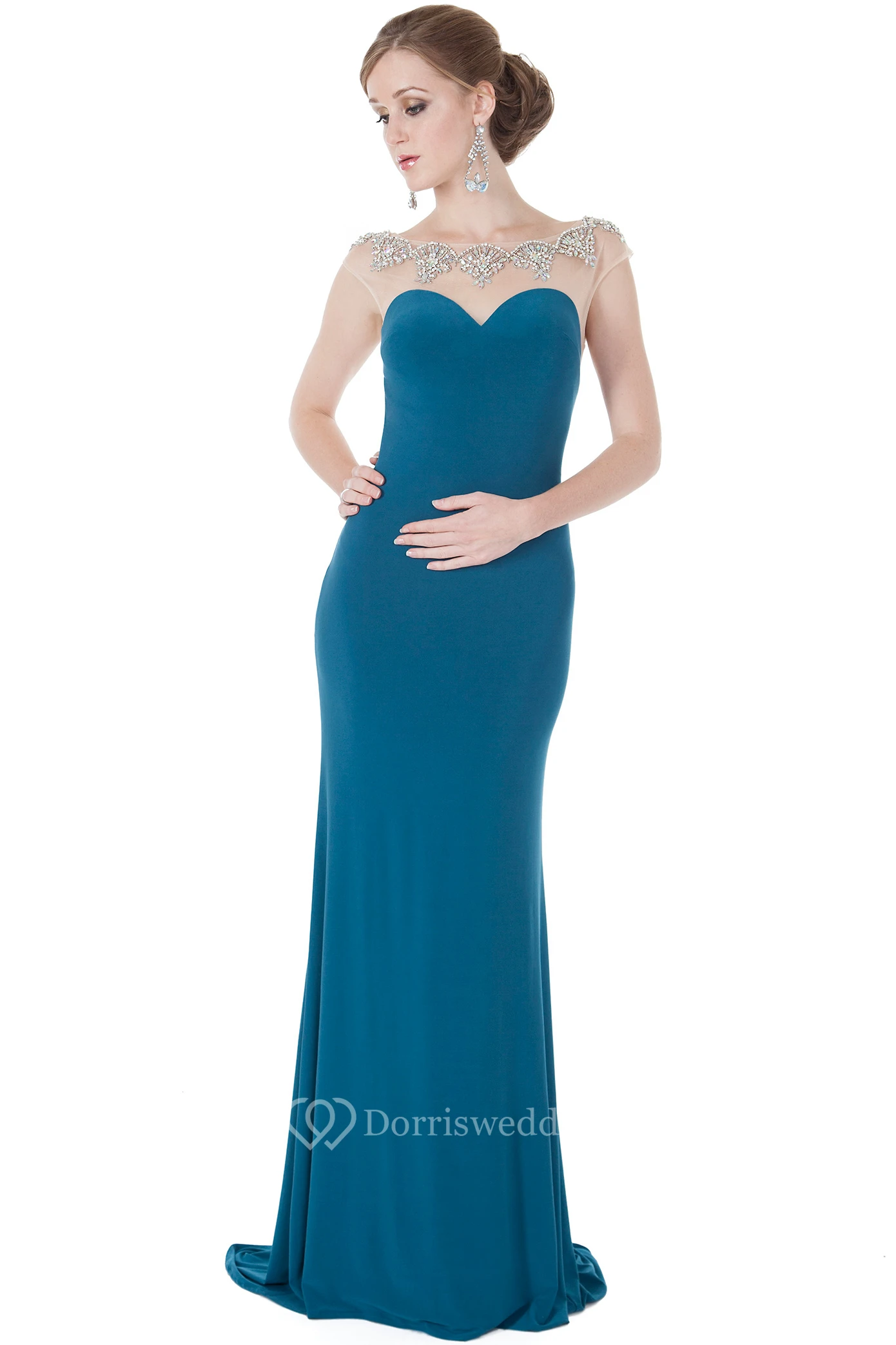 Sheath Bateau-Neck Sleeveless Floor-Length Beaded Jersey Evening Dress