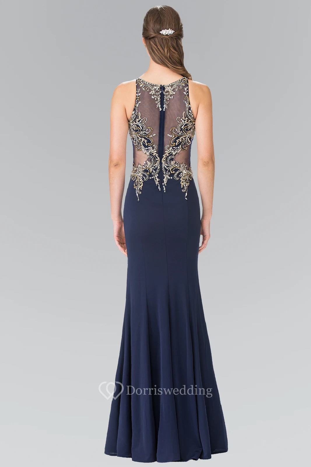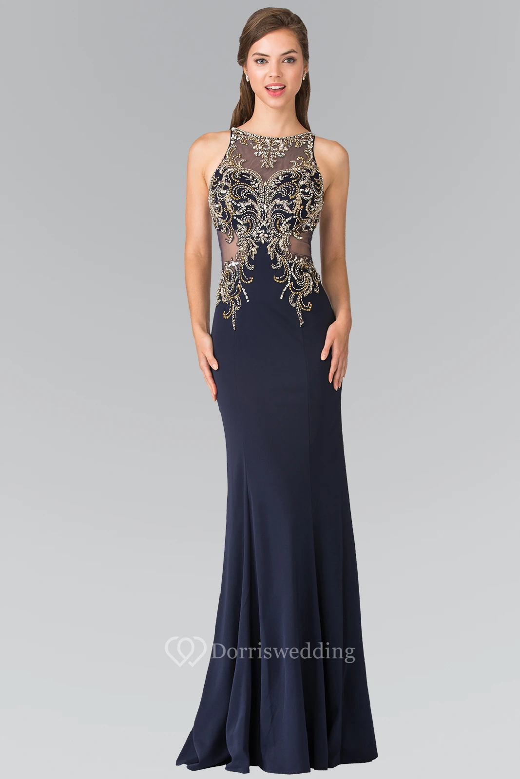 Sheath Bateau Sleeveless Jersey Illusion Dress With Beading And Pleats