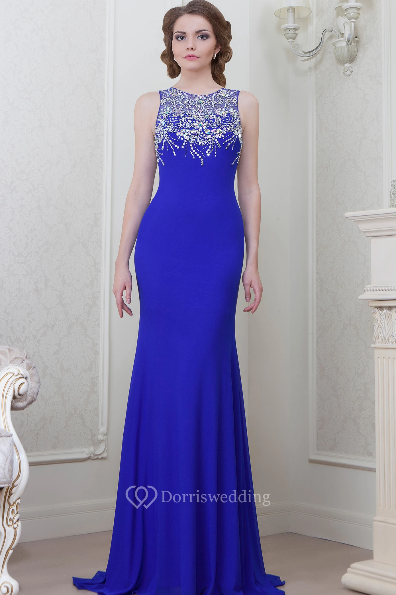 Sheath Beaded Scoop-Neck Sleeveless Floor-Length Jersey Evening Dress