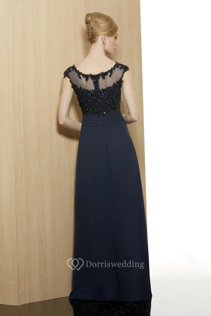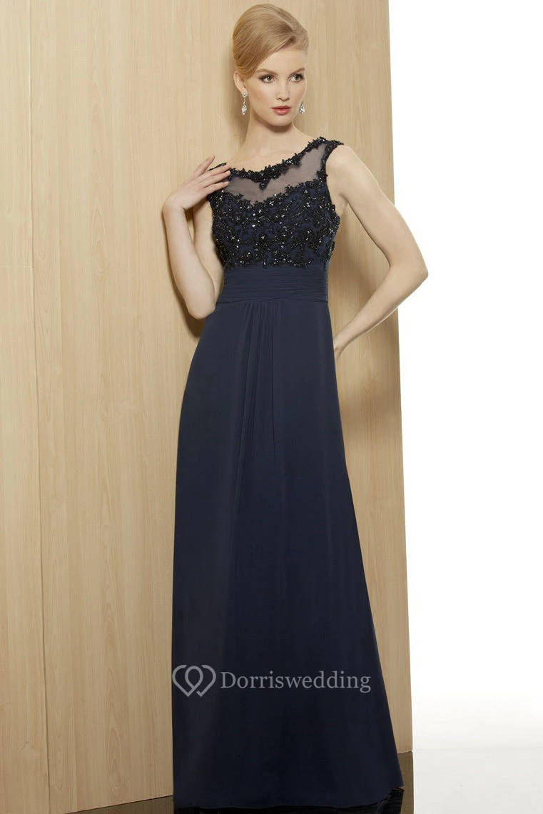 Sheath Beaded Sleeveless Floor-Length V-Neck Chiffon Formal Dress With Illusion Back And Appliques
