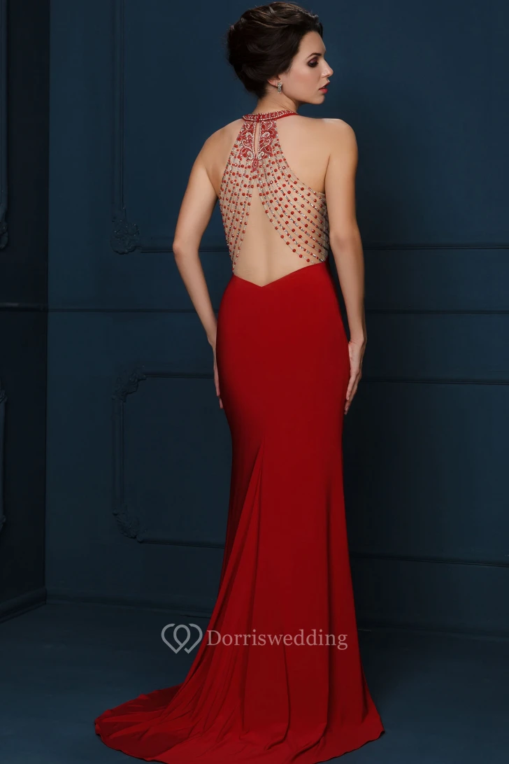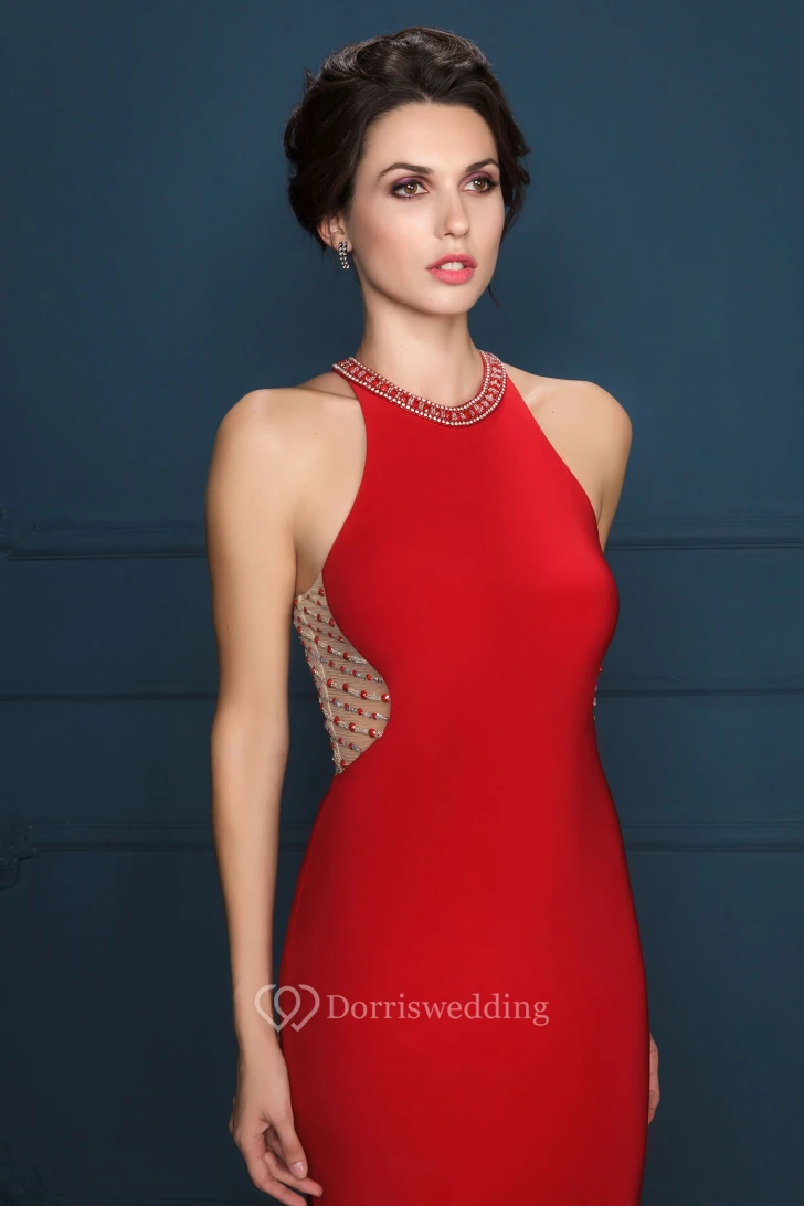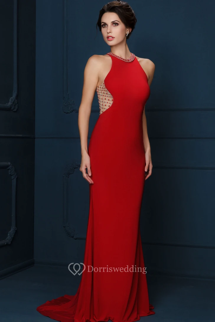 Sheath Beaded Sleeveless Long Scoop-Neck Jersey Evening Dress