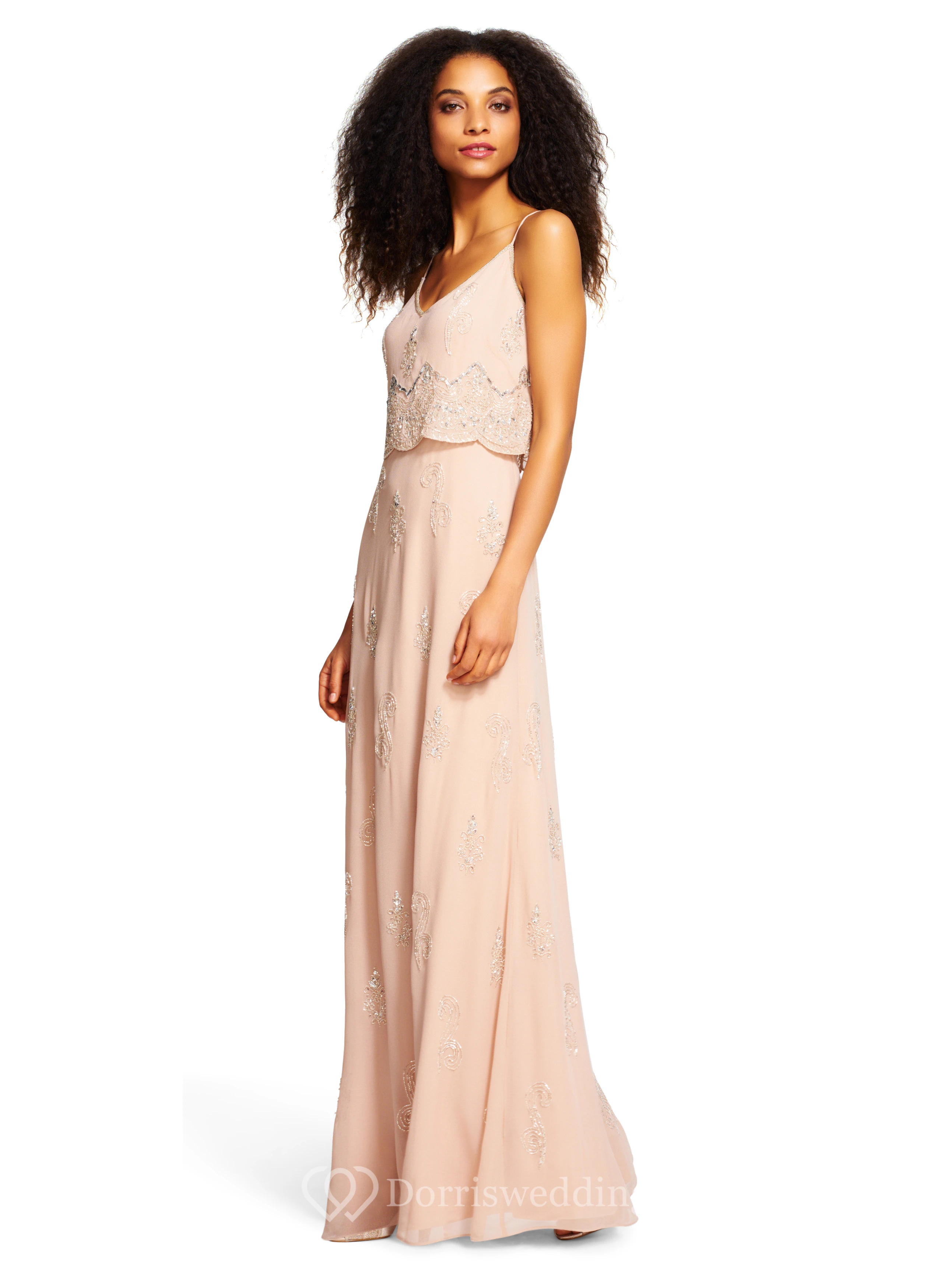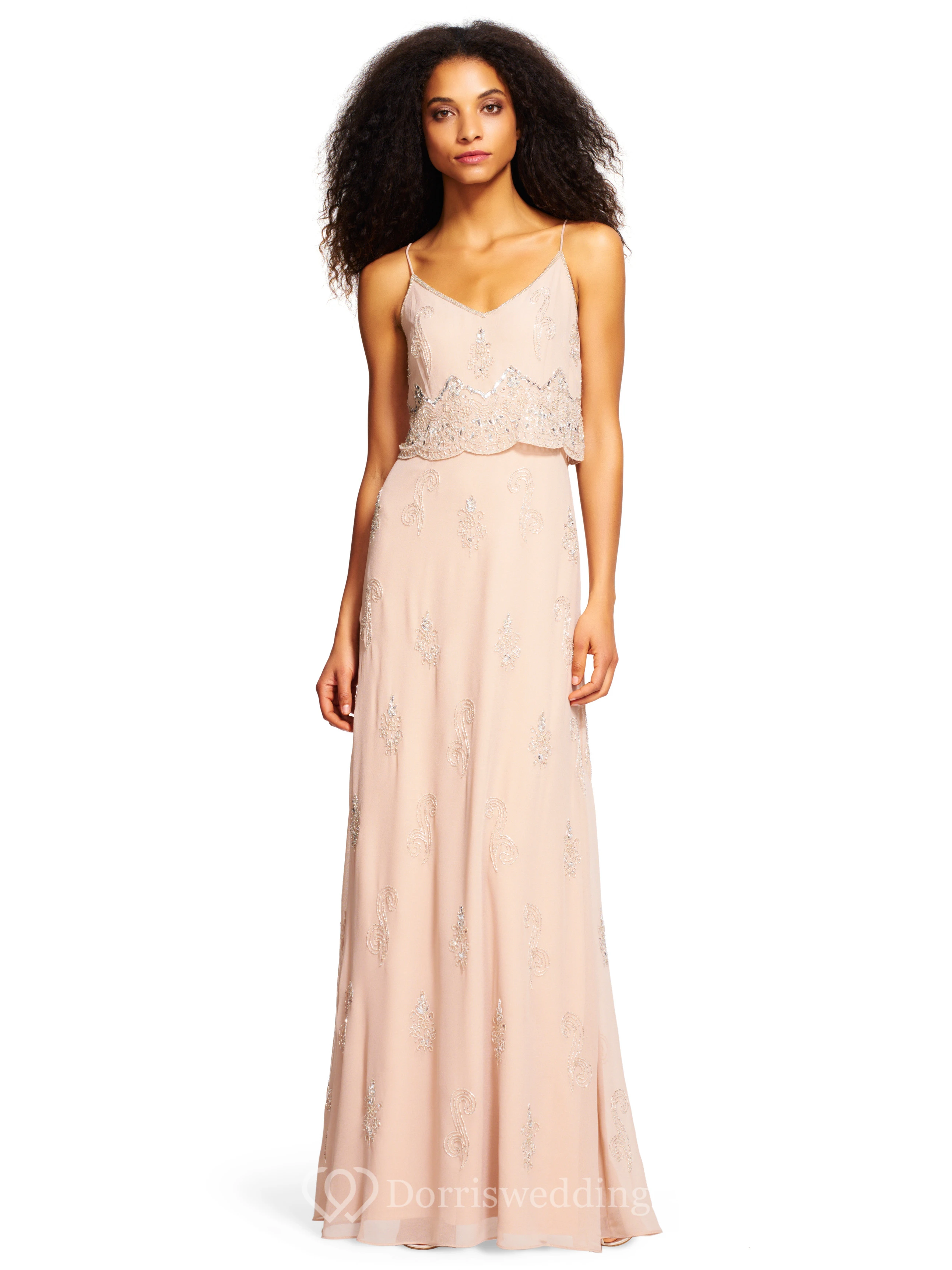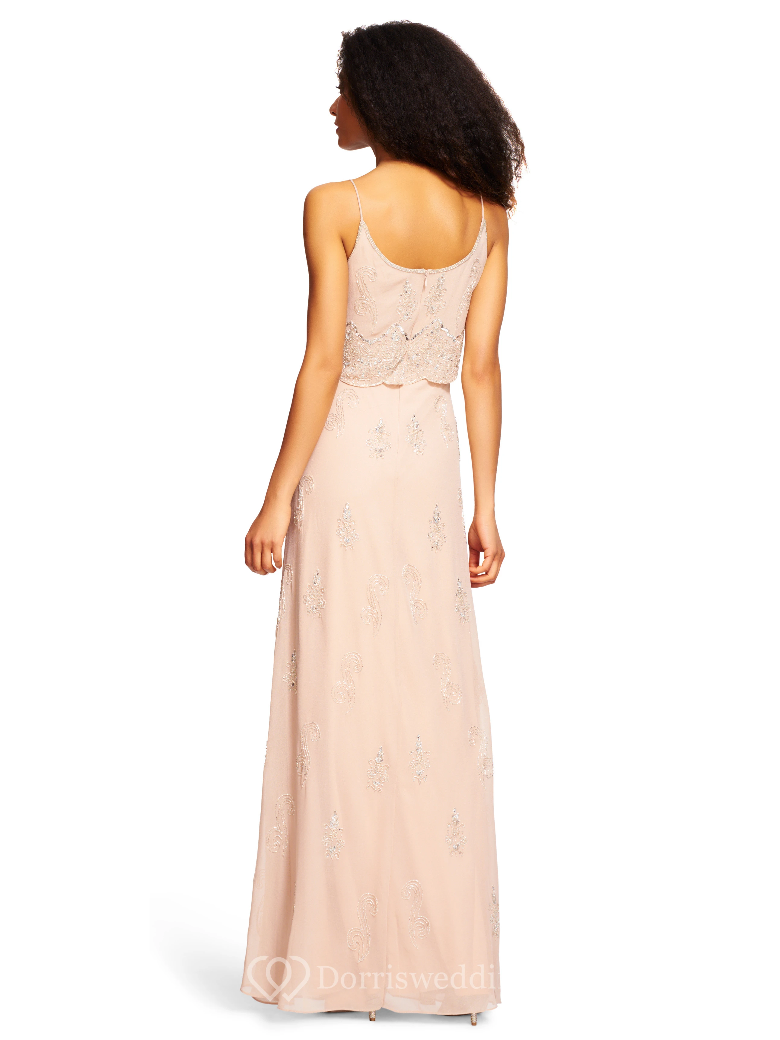 Sheath Beaded Spaghetti Sleeveless Chiffon Bridesmaid Dress