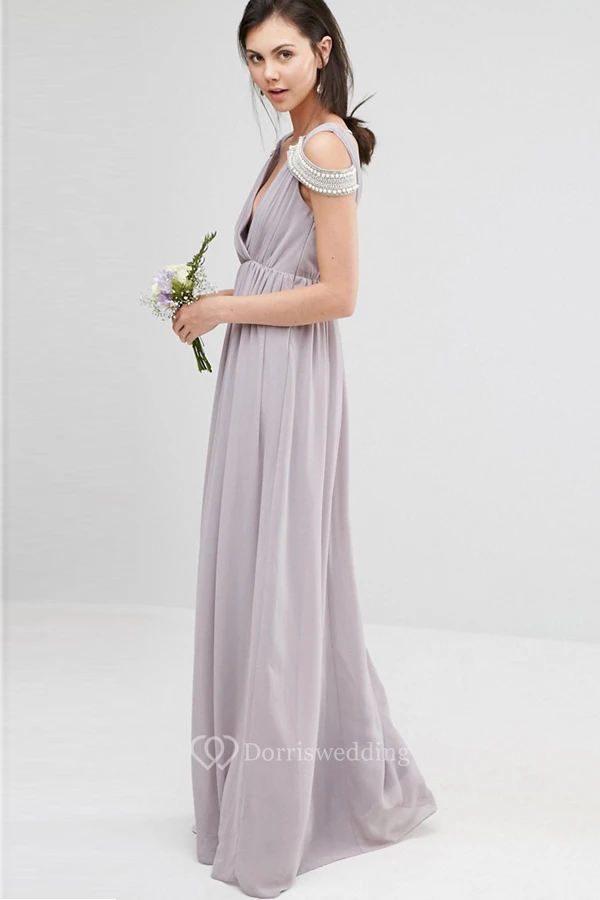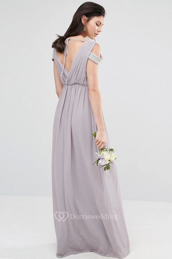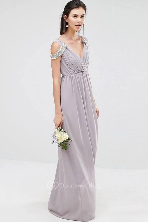 Sheath Beaded V-Neck Chiffon Bridesmaid Dress With Criss Cross