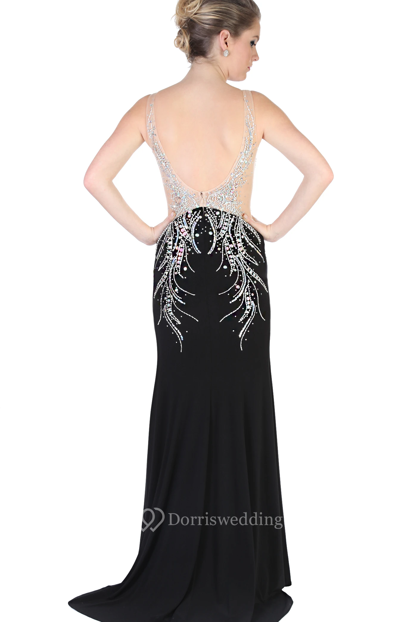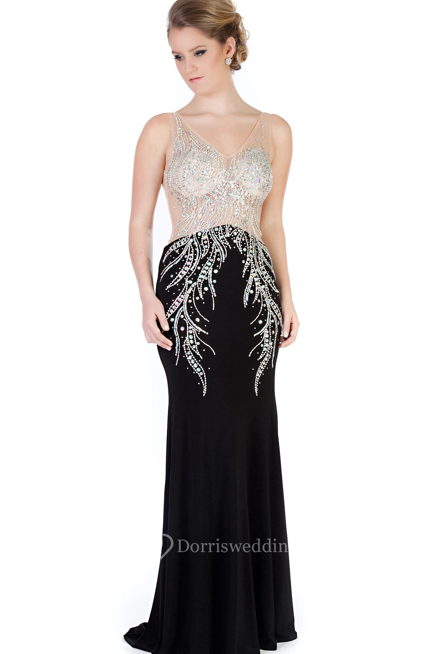 Sheath Beaded V-Neck Sleeveless Long Jersey Evening Dress