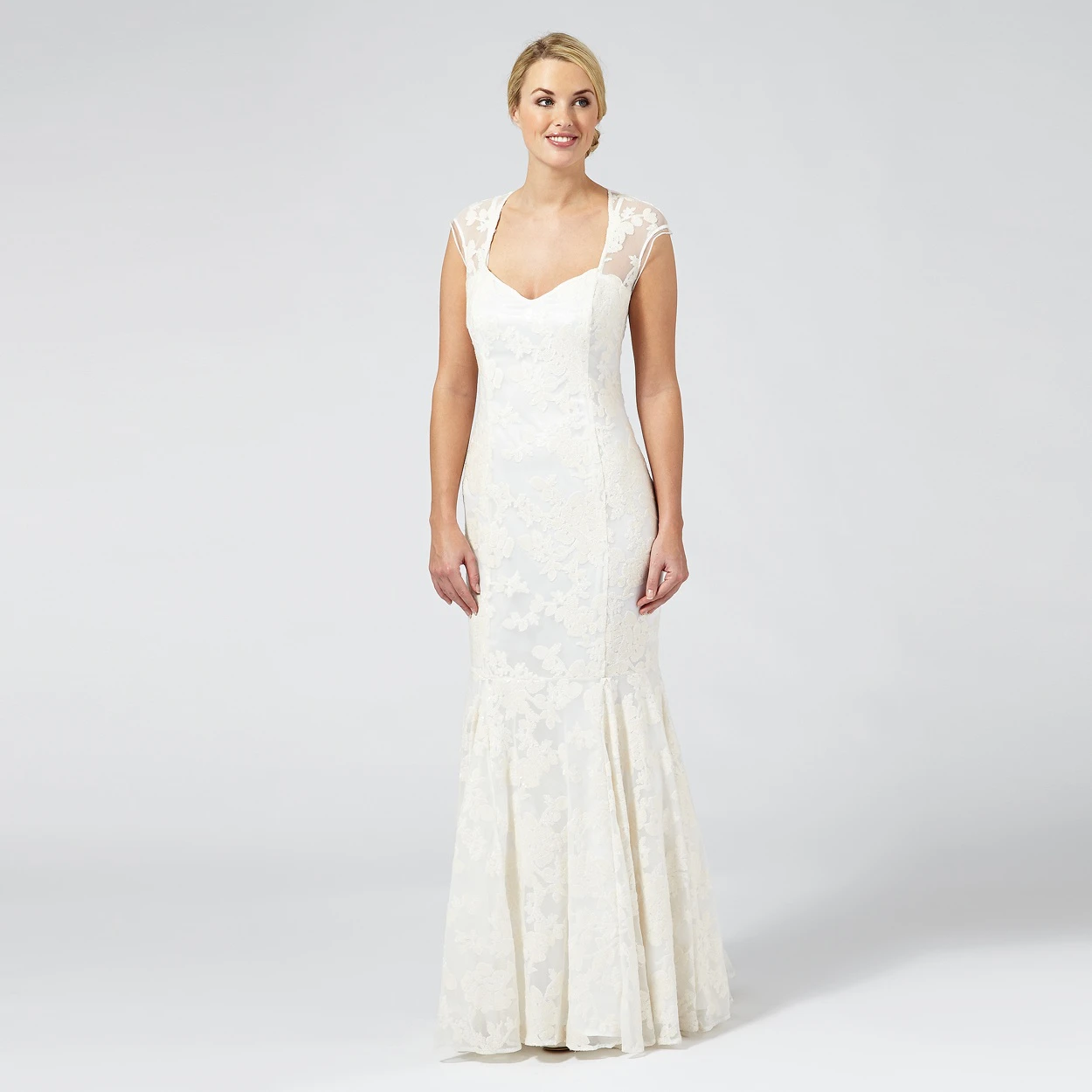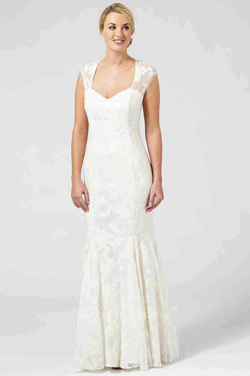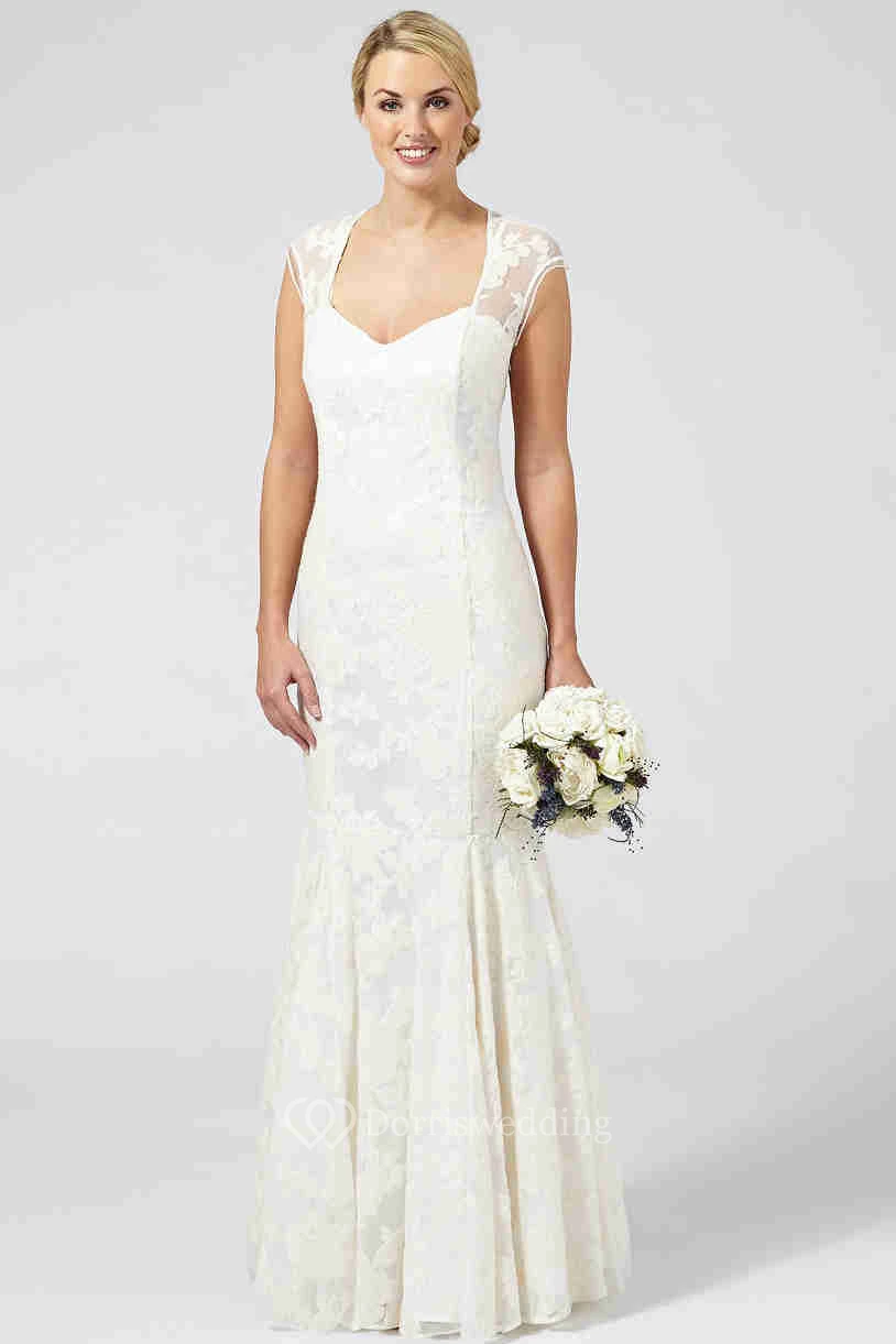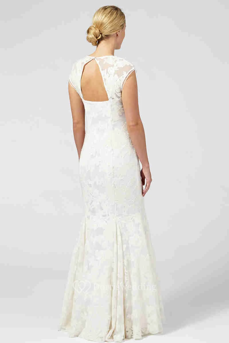 Sheath Cap-Sleeve Floor-Length Appliqued Wedding Dress
