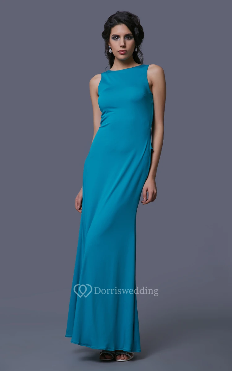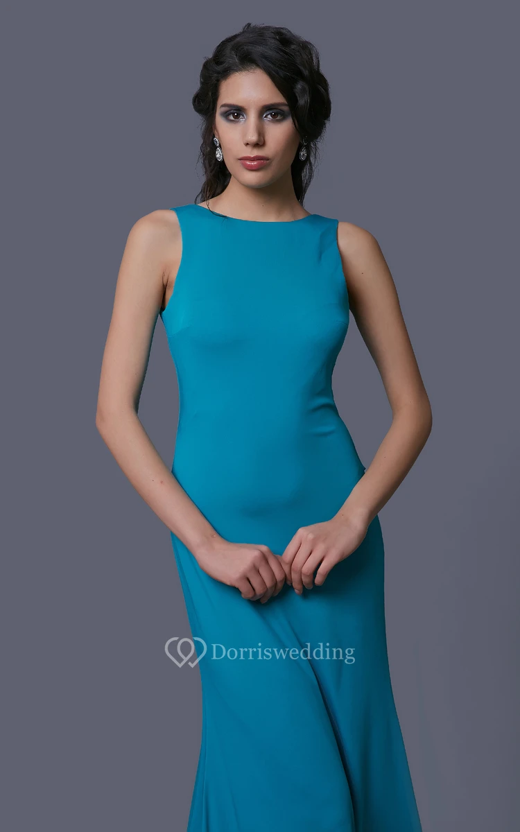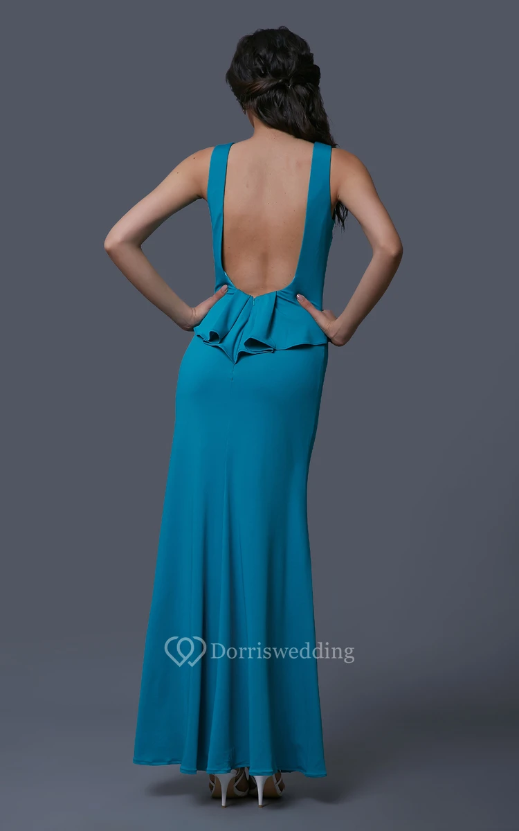 Sheath Chiffon Floor Length Sleeveless Dress With Back Peplum