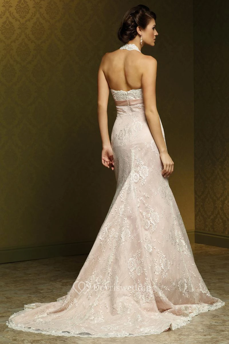 Sheath Floor-Length Appliqued V-Neck Sleeveless Lace Wedding Dress With Bow And Pleats