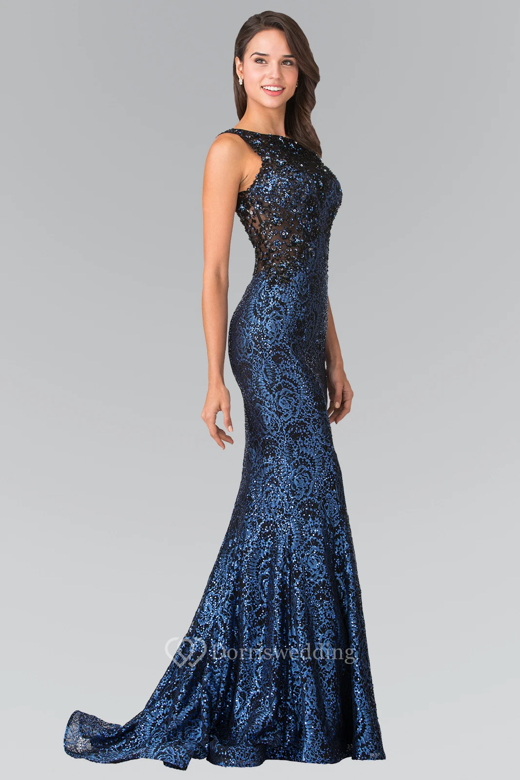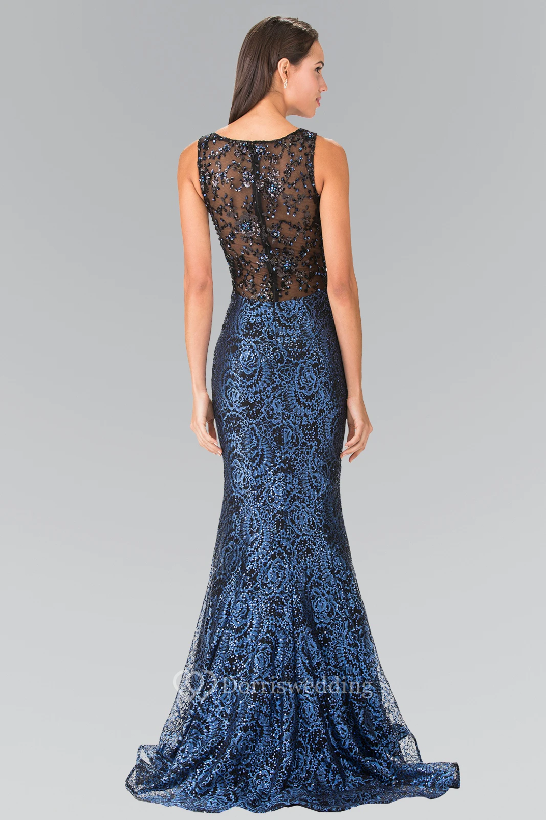 Sheath Floor-Length Bateau Sleeveless Sequins Illusion Dress With Beading