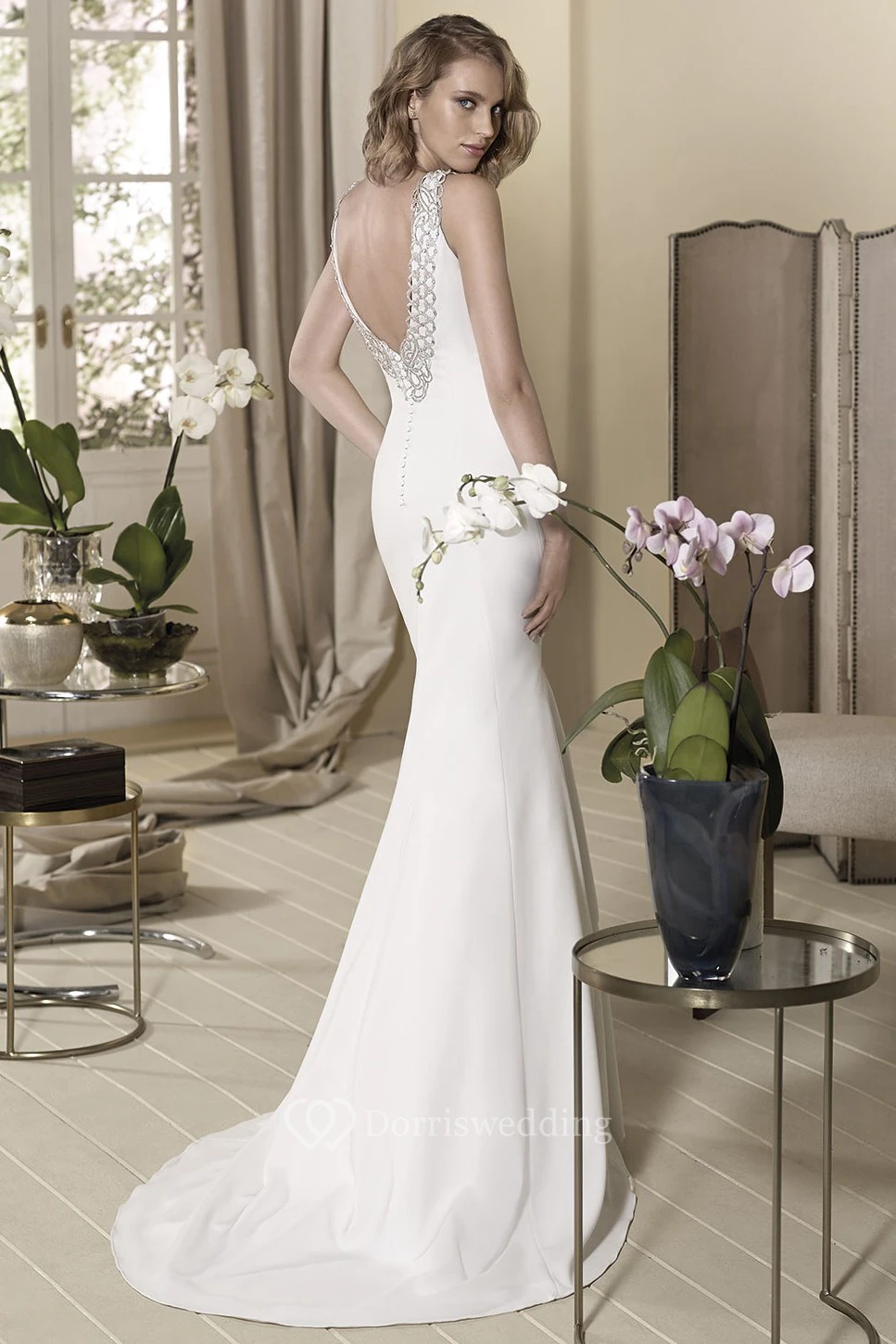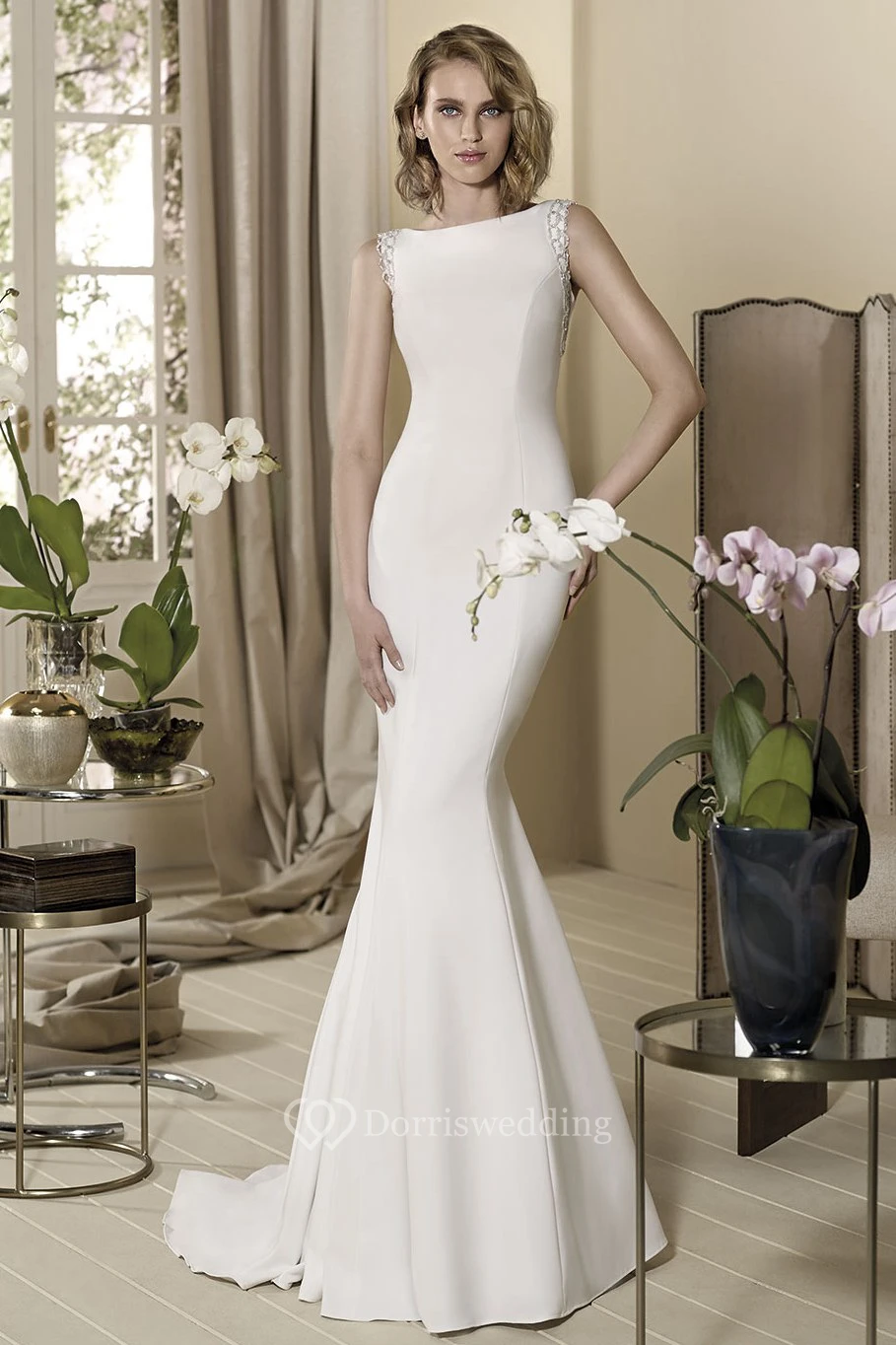 Sheath Floor-Length Beaded Bateau-Neck Sleeveless Wedding Dress