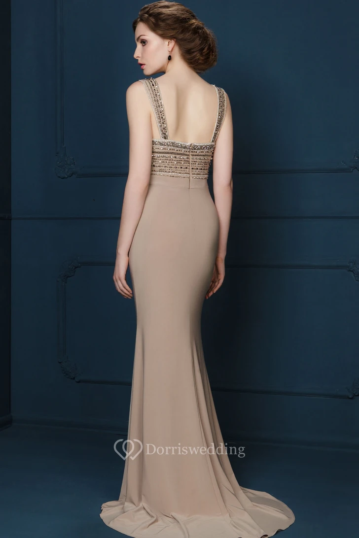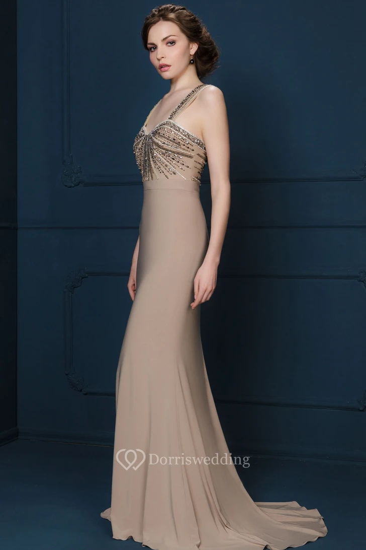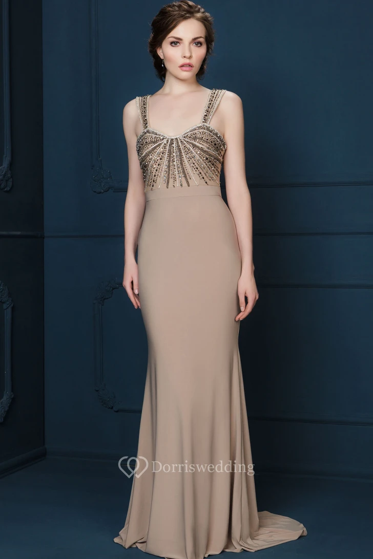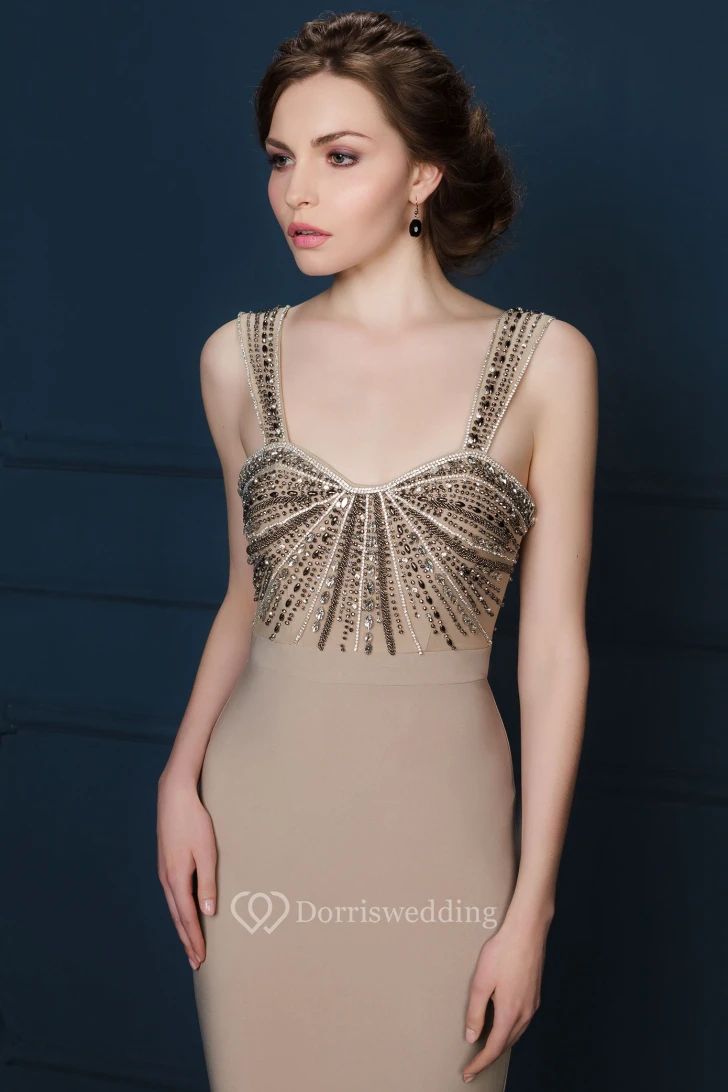 Sheath Floor-Length Beaded Sleeveless Strapped Jersey Evening Dress