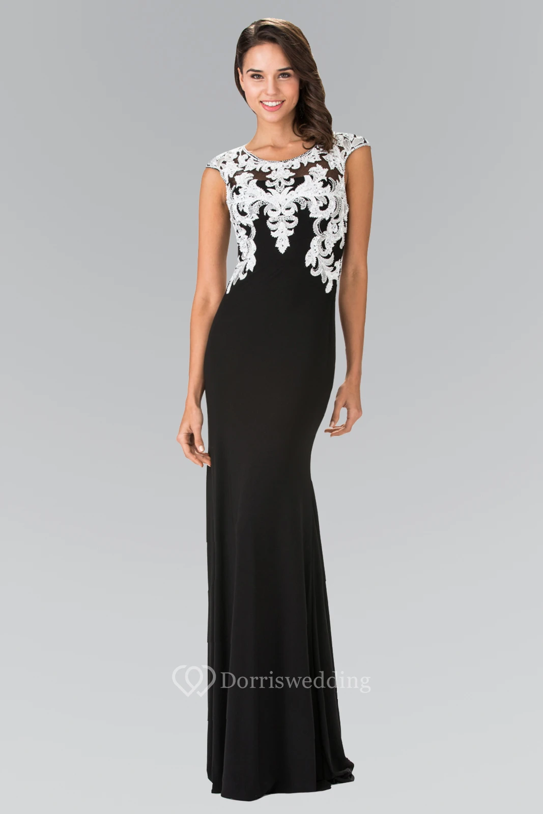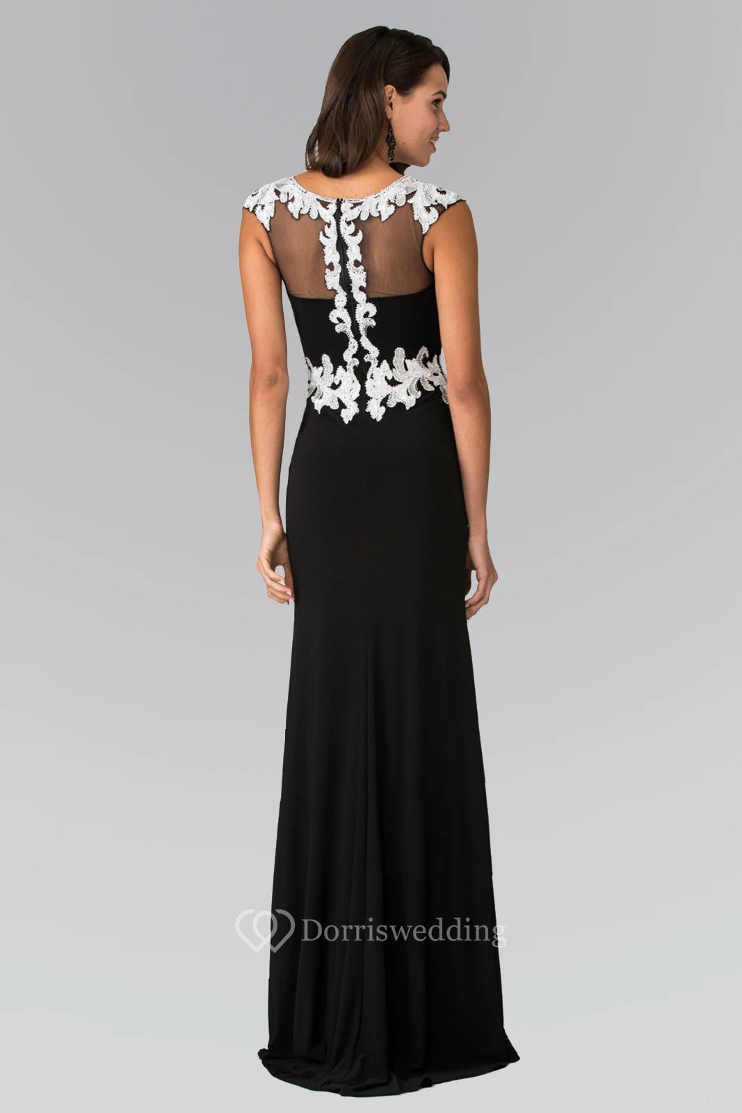 Sheath Floor-Length Cap-Sleeve Jersey Illusion Dress With Appliques