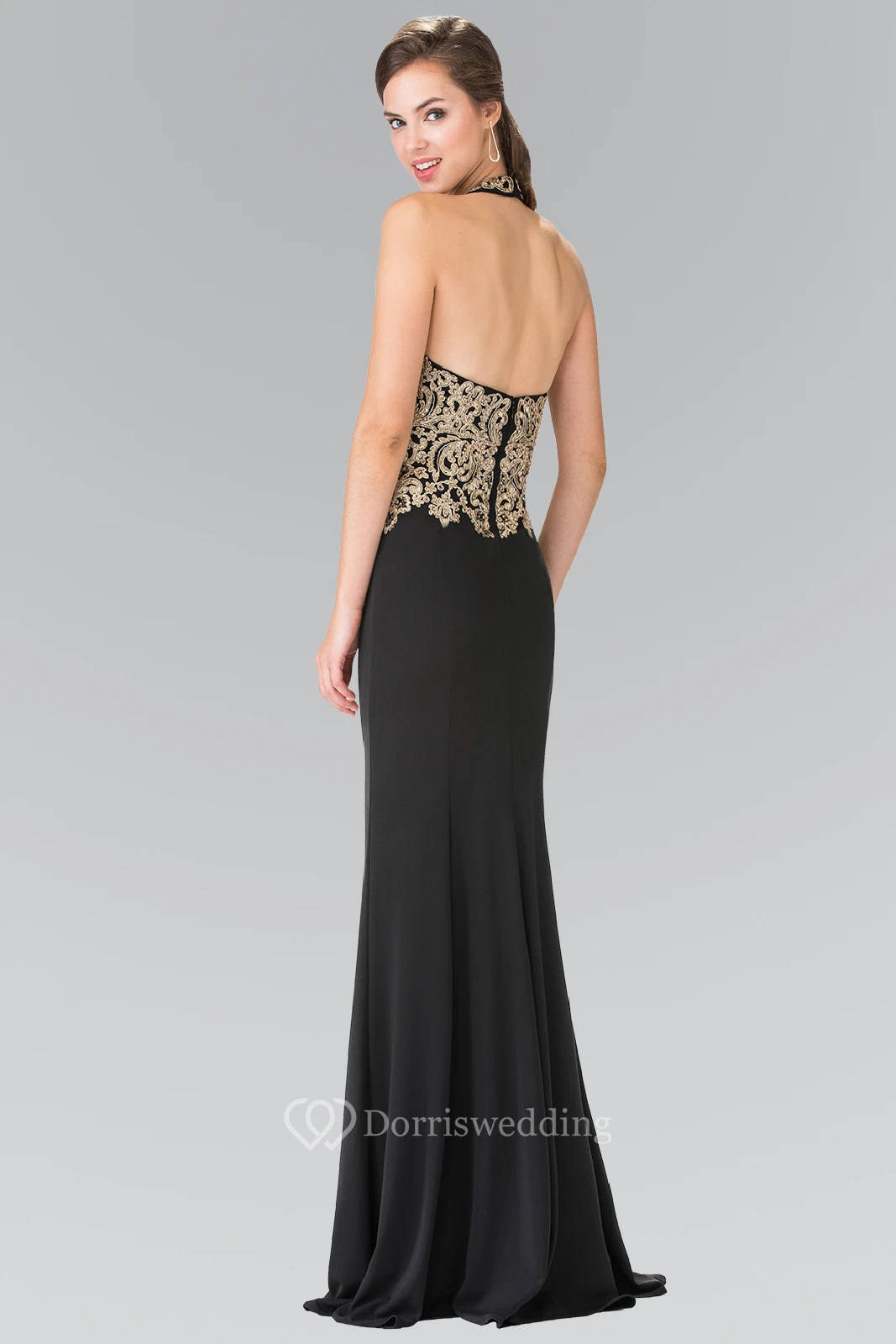 Sheath Floor-Length Halter Sleeveless Jersey Backless Dress With Appliques