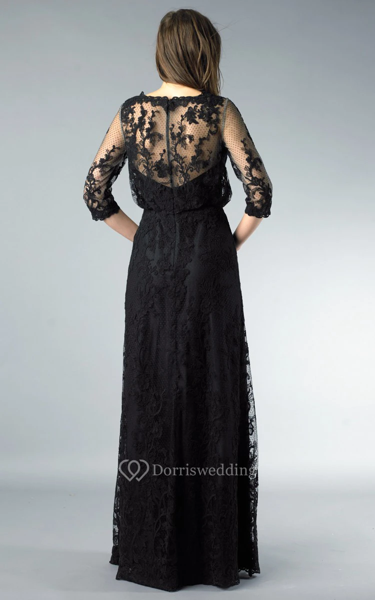 Sheath Floor-length High Neck Long Sleeve Lace Illusion Dress