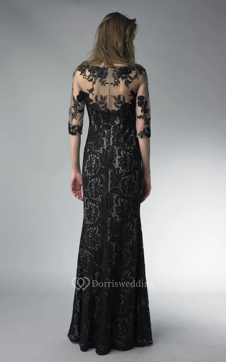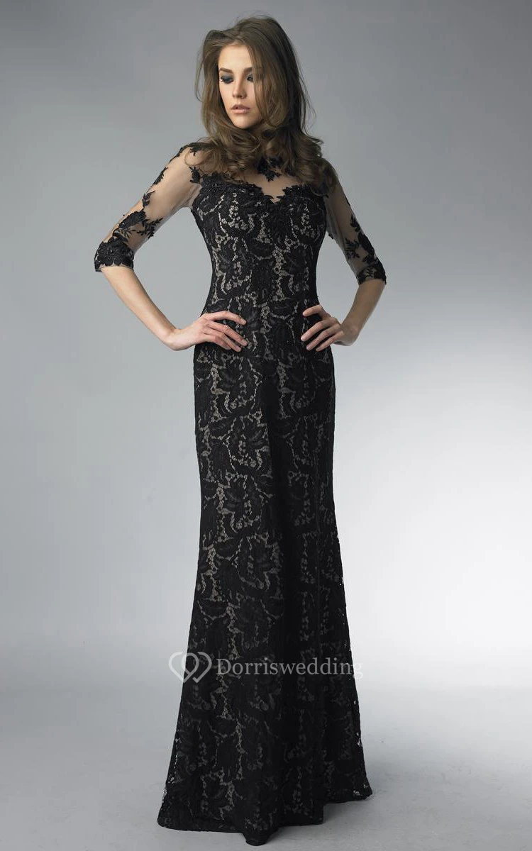 Sheath Floor-length High Neck Long Sleeve Lace Zipper Dress