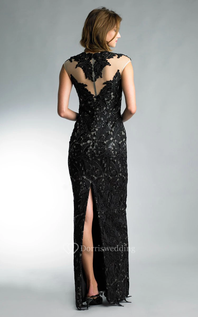 Sheath Floor-length High Neck Short Sleeve Lace Zipper Dress