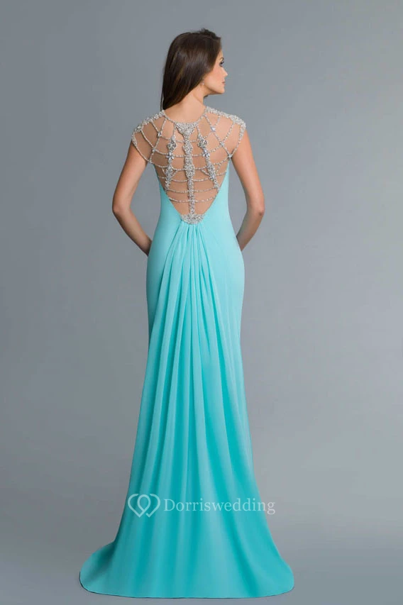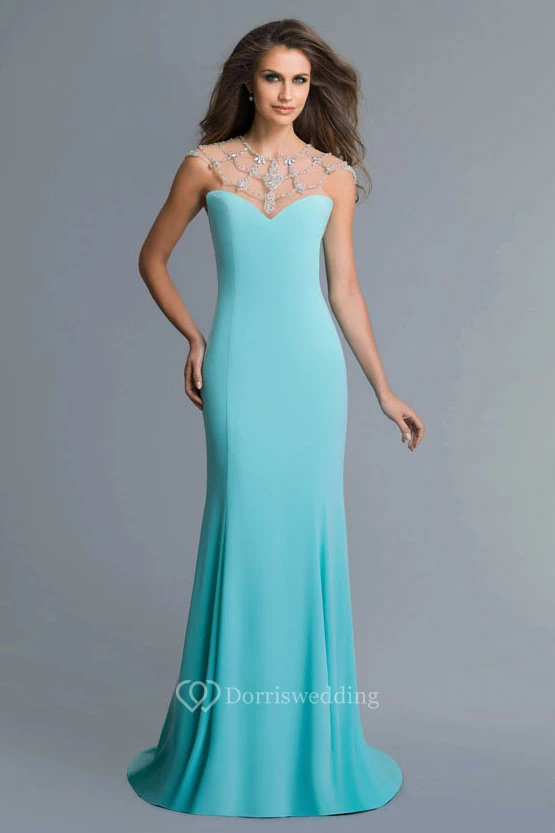 Sheath Floor-Length Jersey Illusion Dress With Beading