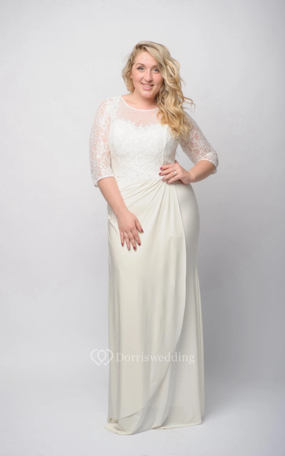 Sheath Floor-Length Jewel 3 Jersey Beading Lace Zipper Dress