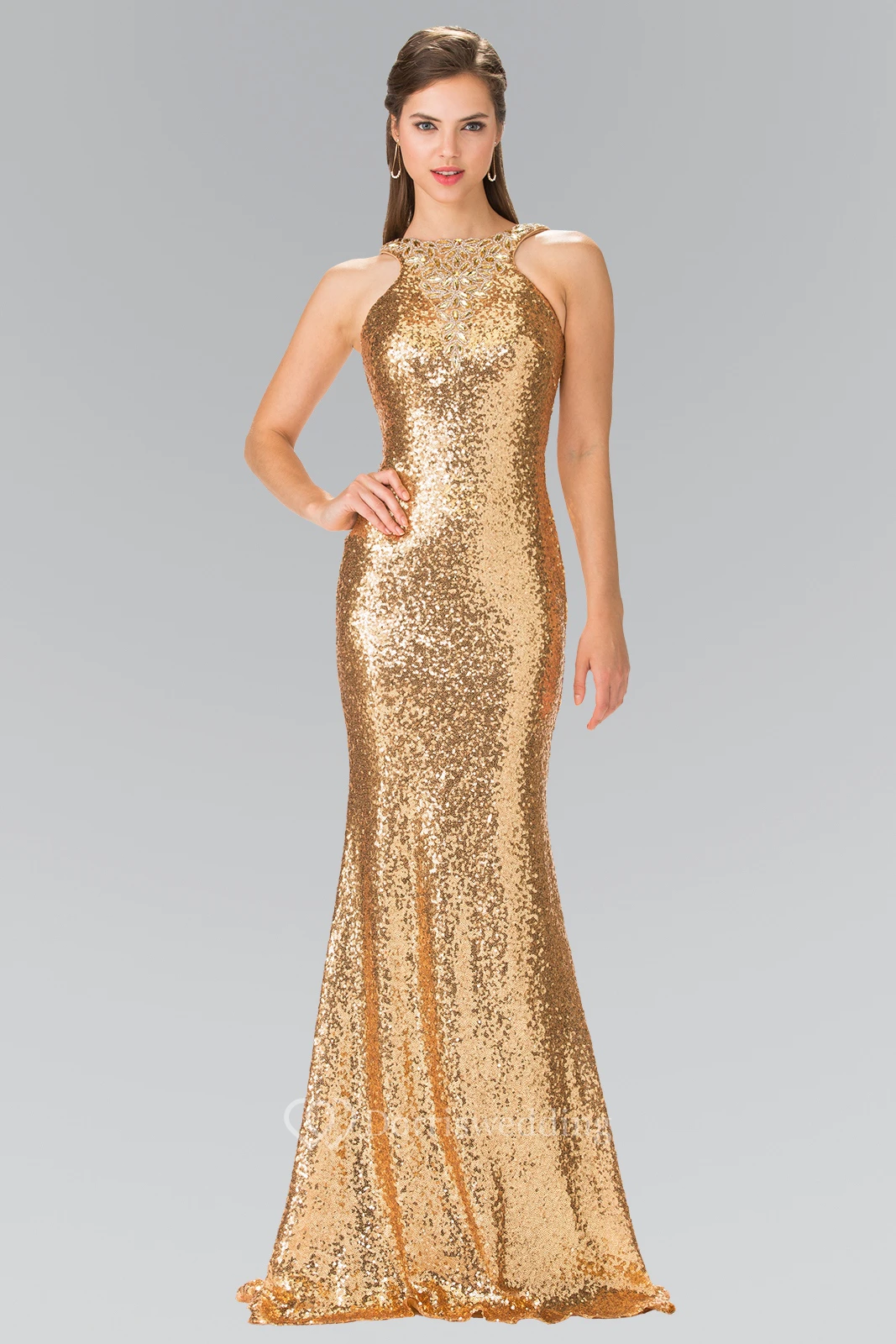 Sheath Floor-Length Jewel-Neck Sleeveless Sequins Dress