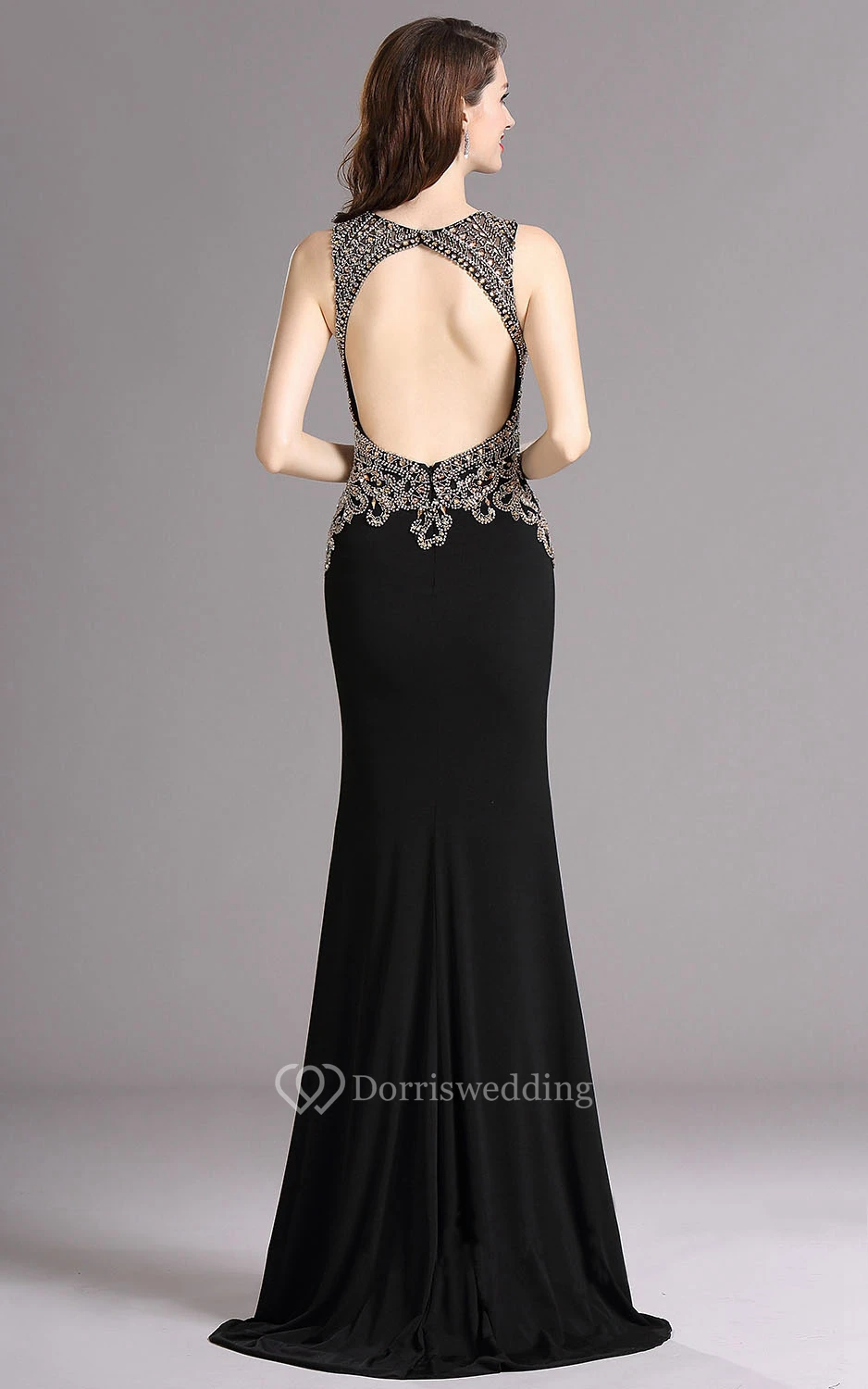 Sheath Floor-Length Jewel Sleeveless Jersey Beading Keyhole Dress