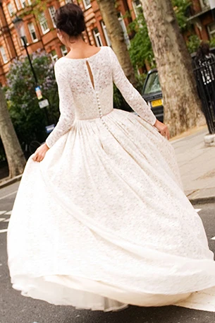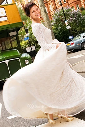 Sheath Floor-Length Long-Sleeve Lace Wedding Dress With Illusion Back