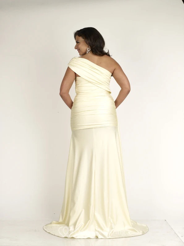 Sheath Floor-length One-shoulder Jersey Epaulet Ruching Brush Train Dress