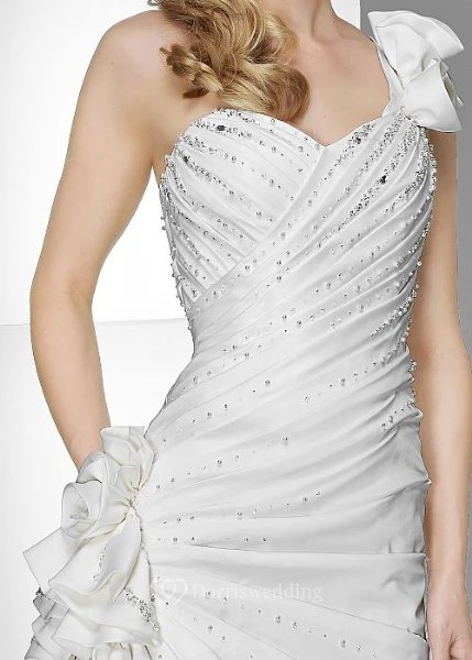 Sheath Floor-Length One-Shoulder Sleeveless Side-Draped Stretched Satin Wedding Dress With Beading And Flower