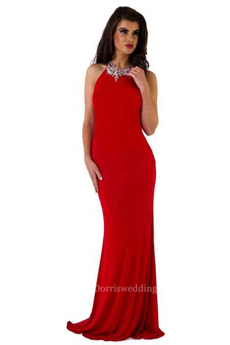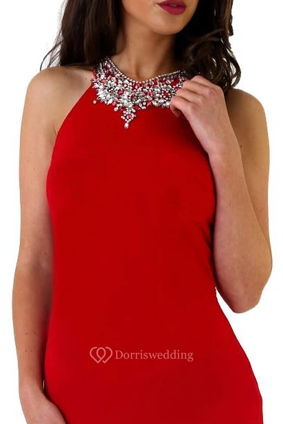 Sheath Floor-Length Scoop Beaded Sleeveless Jersey Prom Dress With Pleats